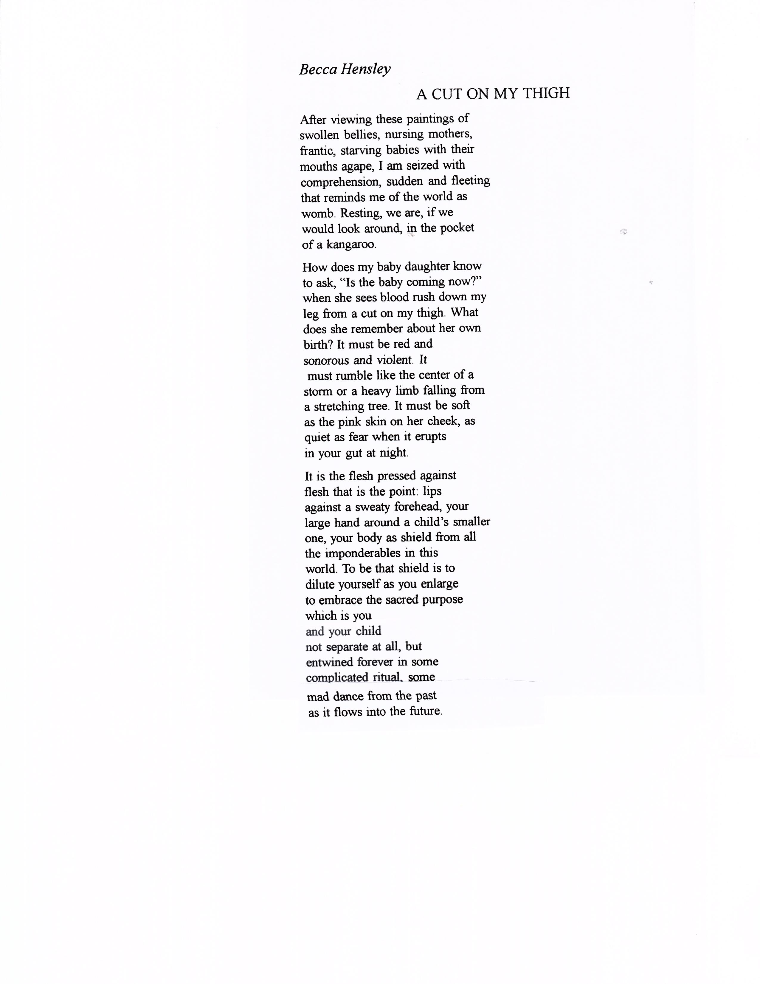 "I see an oceanscape turbulent with blues. They mottle the water like