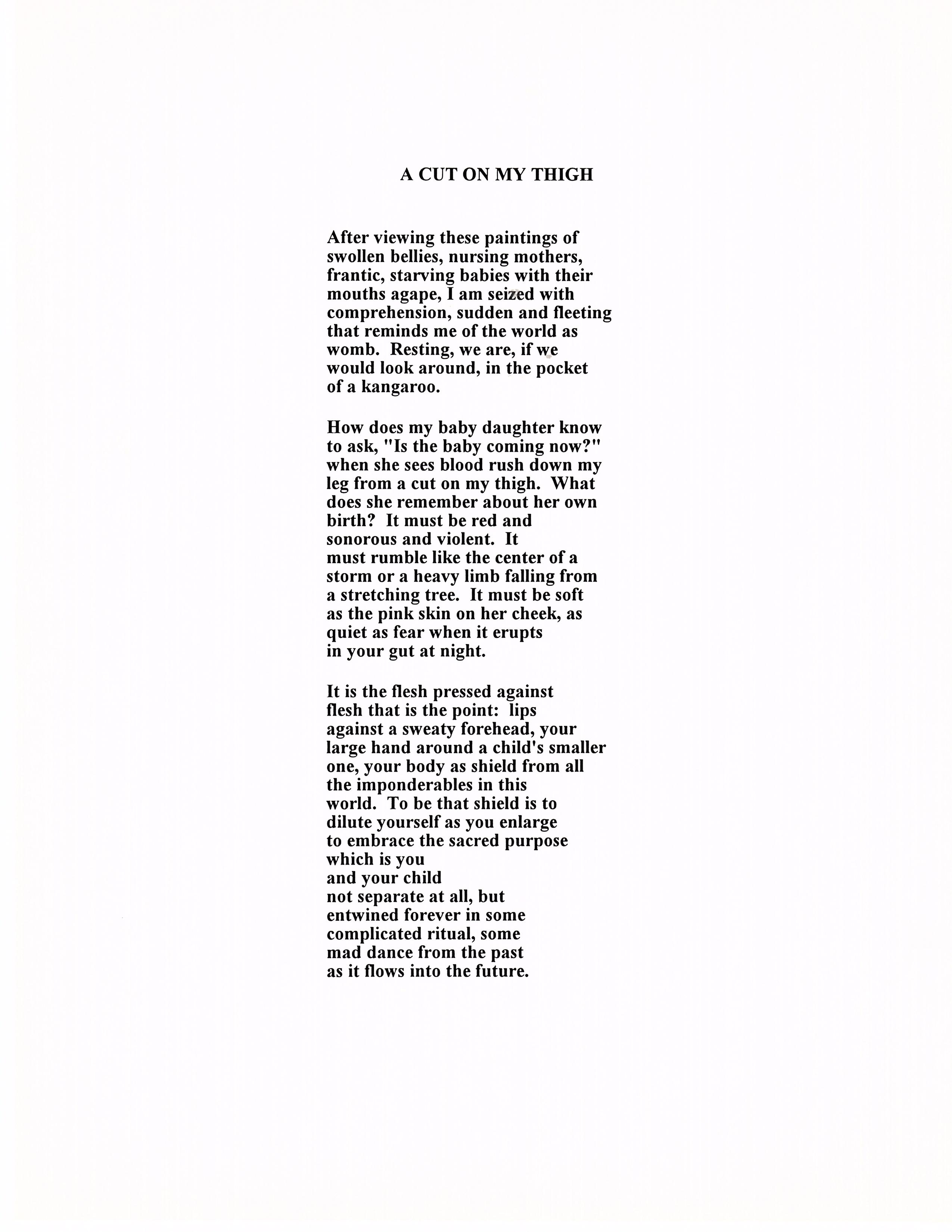 "I see an oceanscape turbulent with blues. They mottle the water like