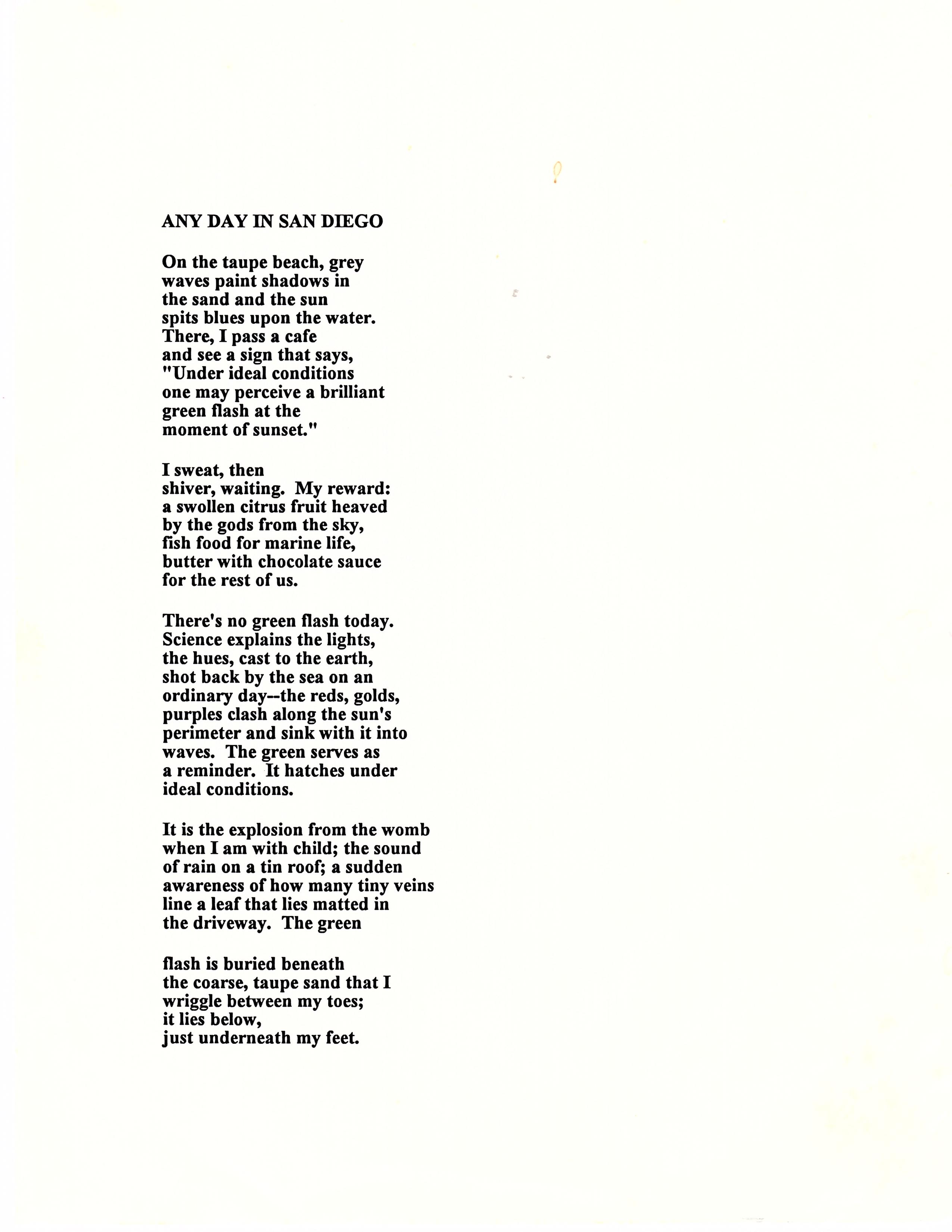 "I see an oceanscape turbulent with blues. They mottle the water like