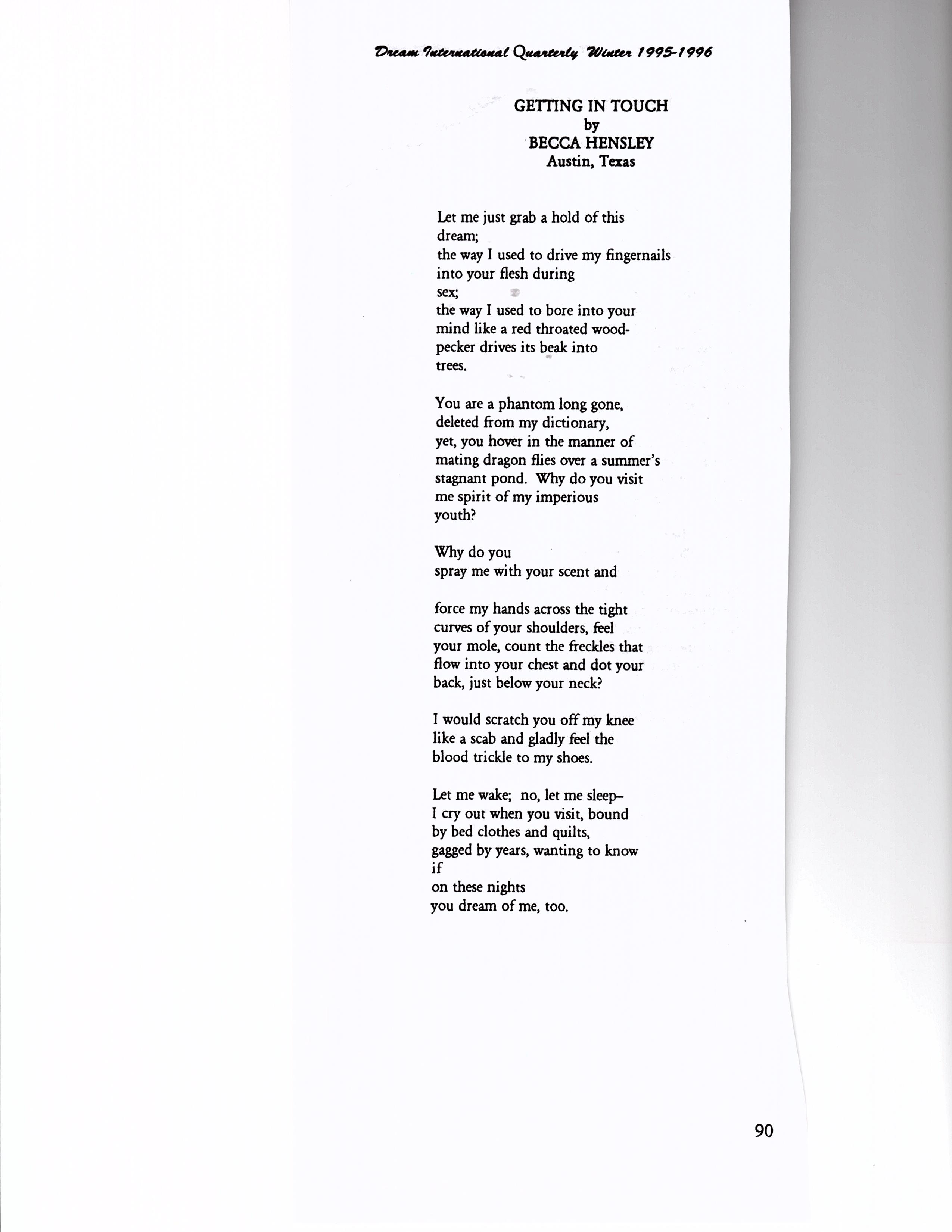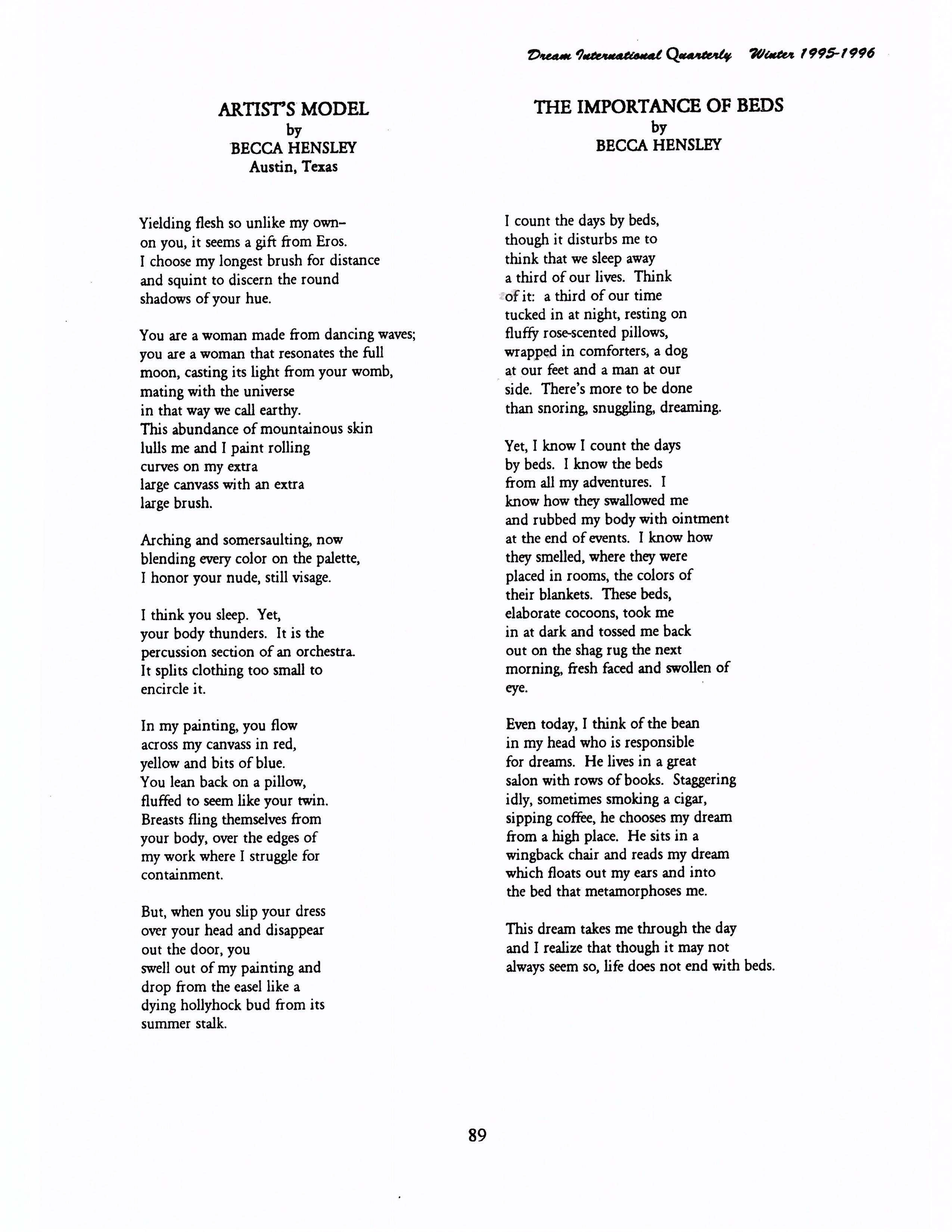 Artist’s Model; The Importance of Beds; Getting in Touch….Dream International Winter 1995