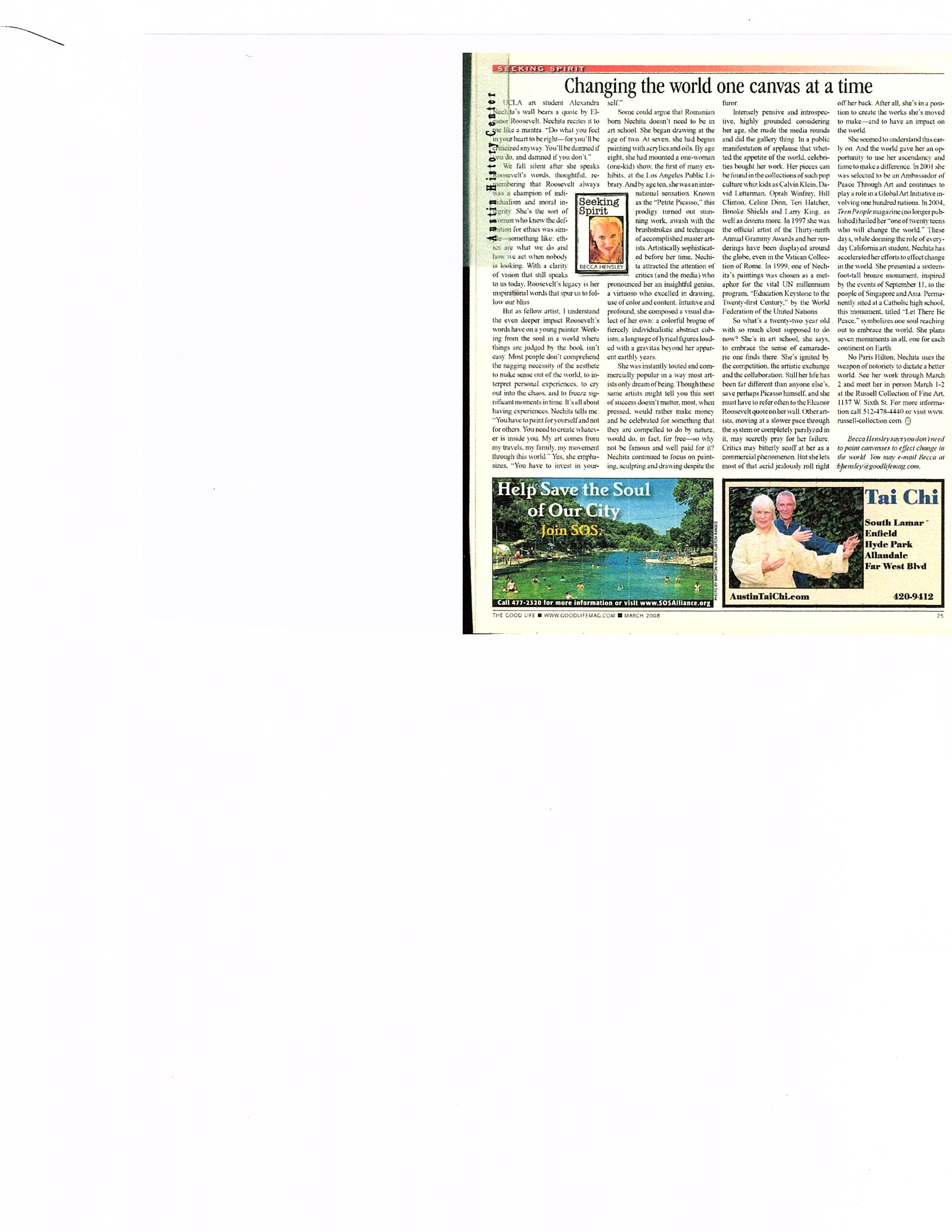 Changing the world one canvas at a time…The Good Life…March 2008