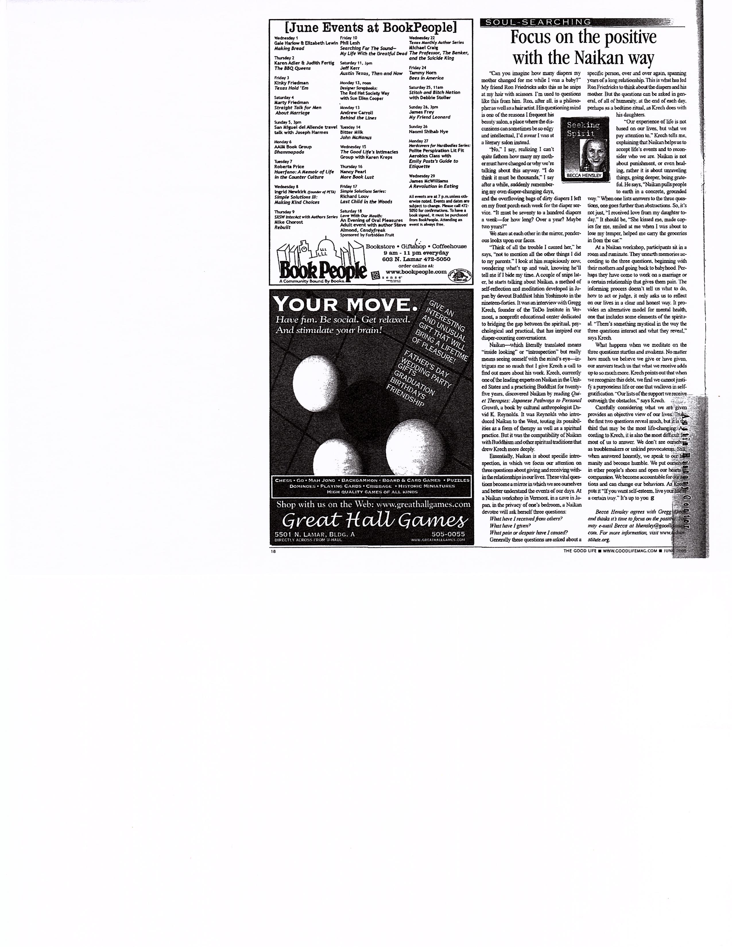 Focus on the positive with the Naikan way…The Good Life…July 2005
