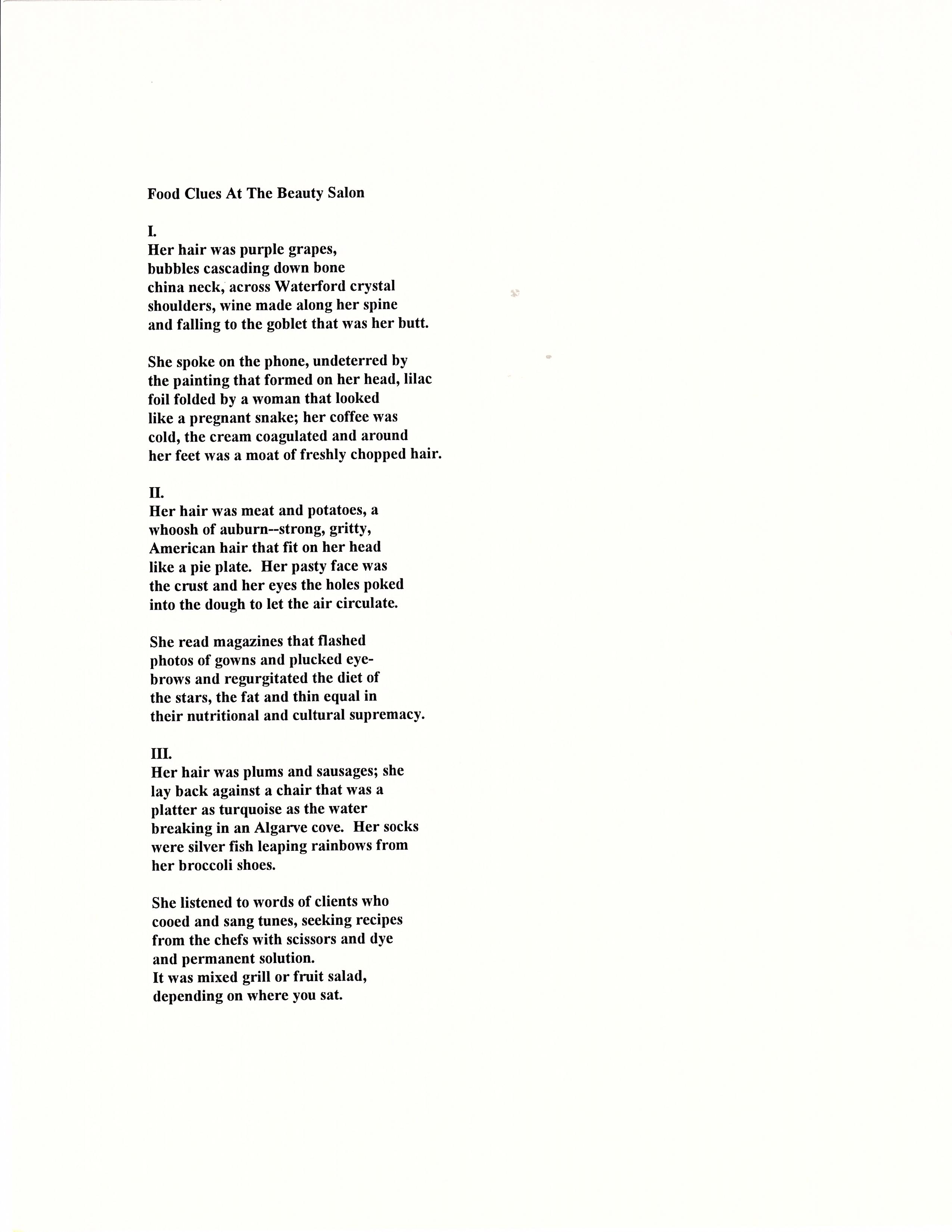 "I see an oceanscape turbulent with blues. They mottle the water like