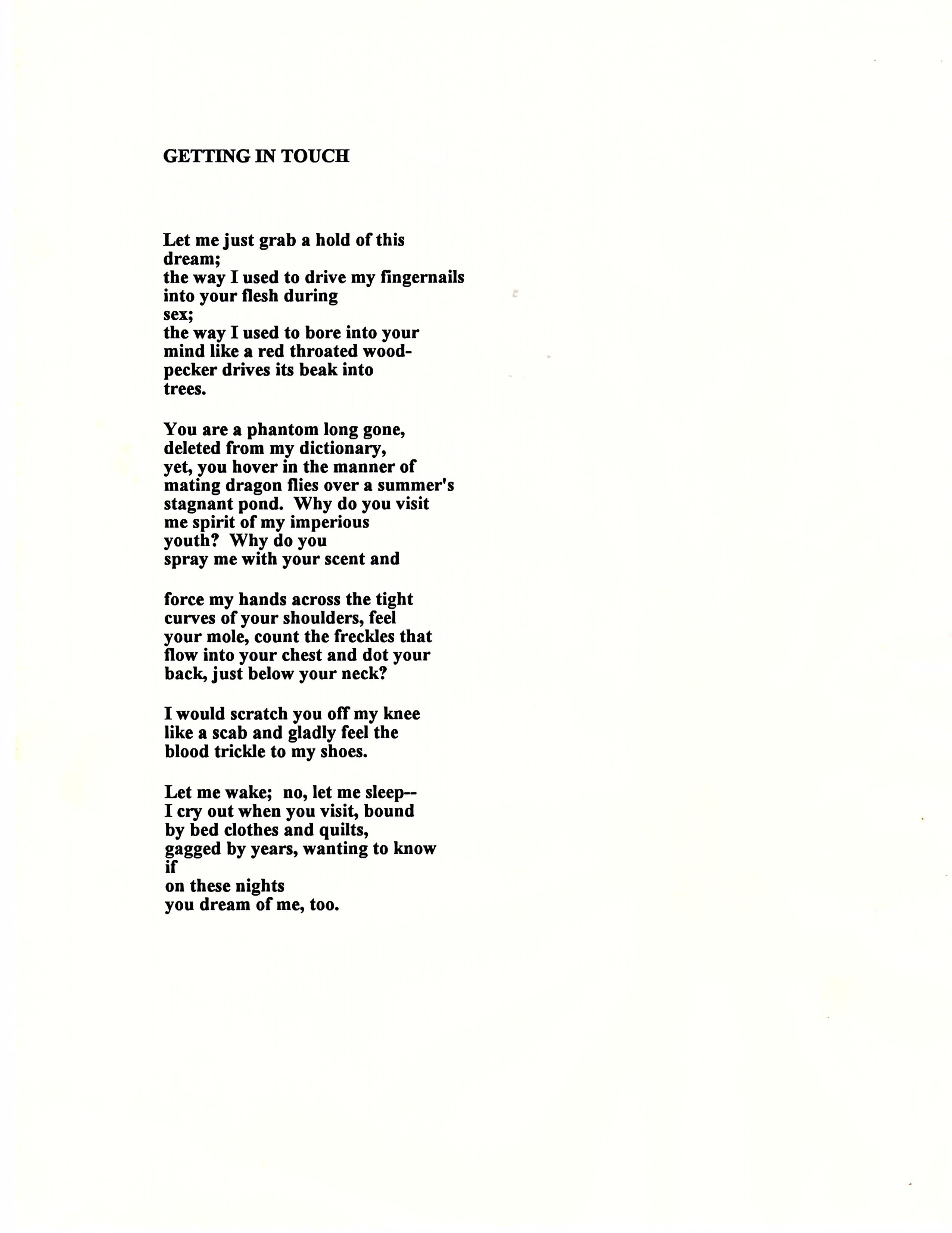 "I see an oceanscape turbulent with blues. They mottle the water like