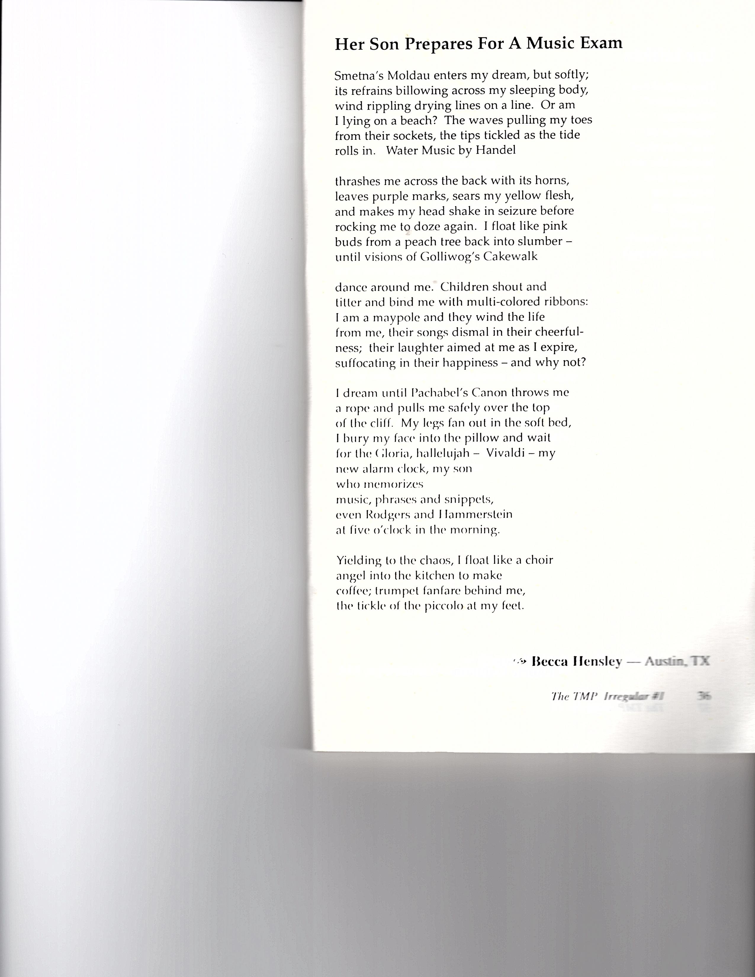 Her Son Prepares For A Music Exam…The TMP Irregular 1998