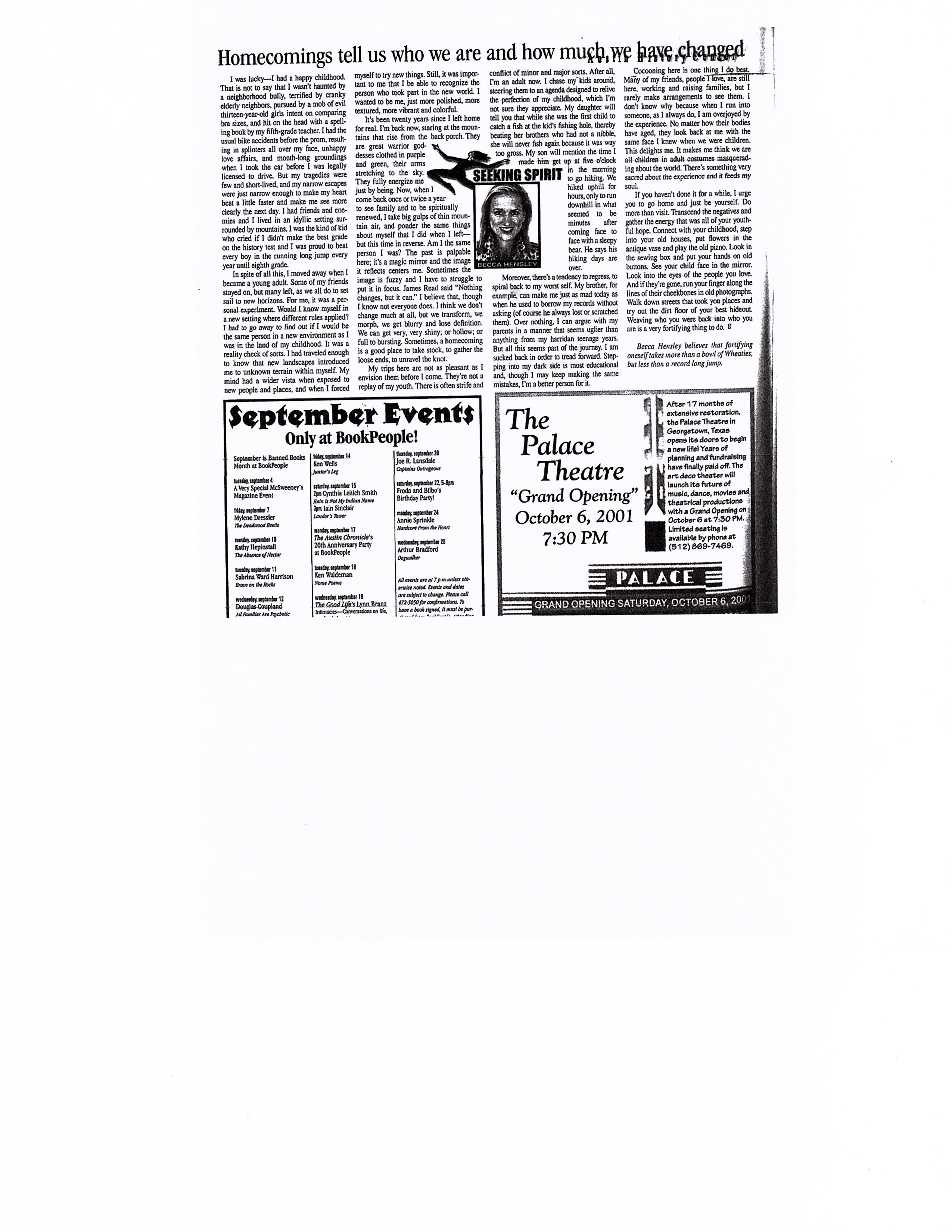 Homecomings tell us who we are and how much we have changed…The Good Life…October 2001