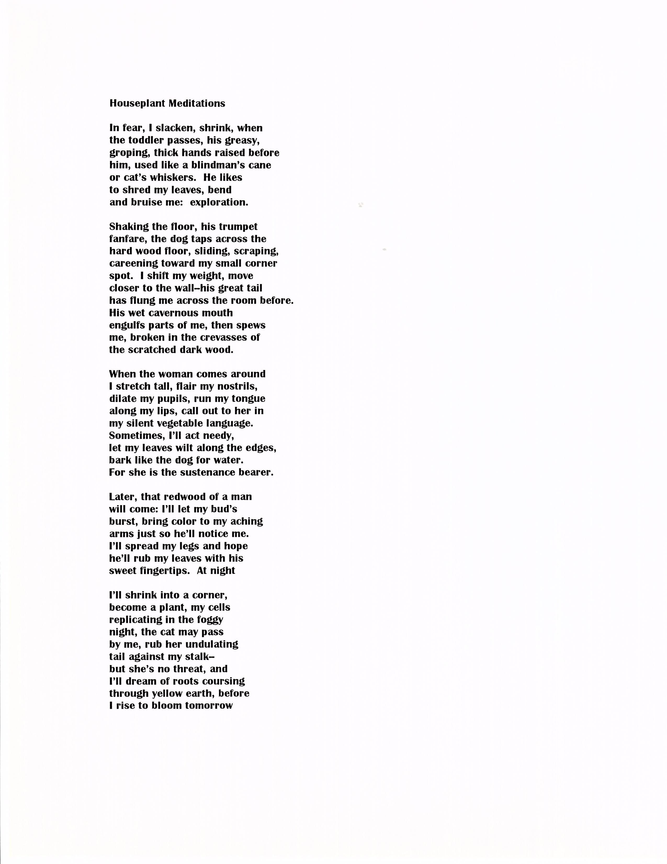 "I see an oceanscape turbulent with blues. They mottle the water like