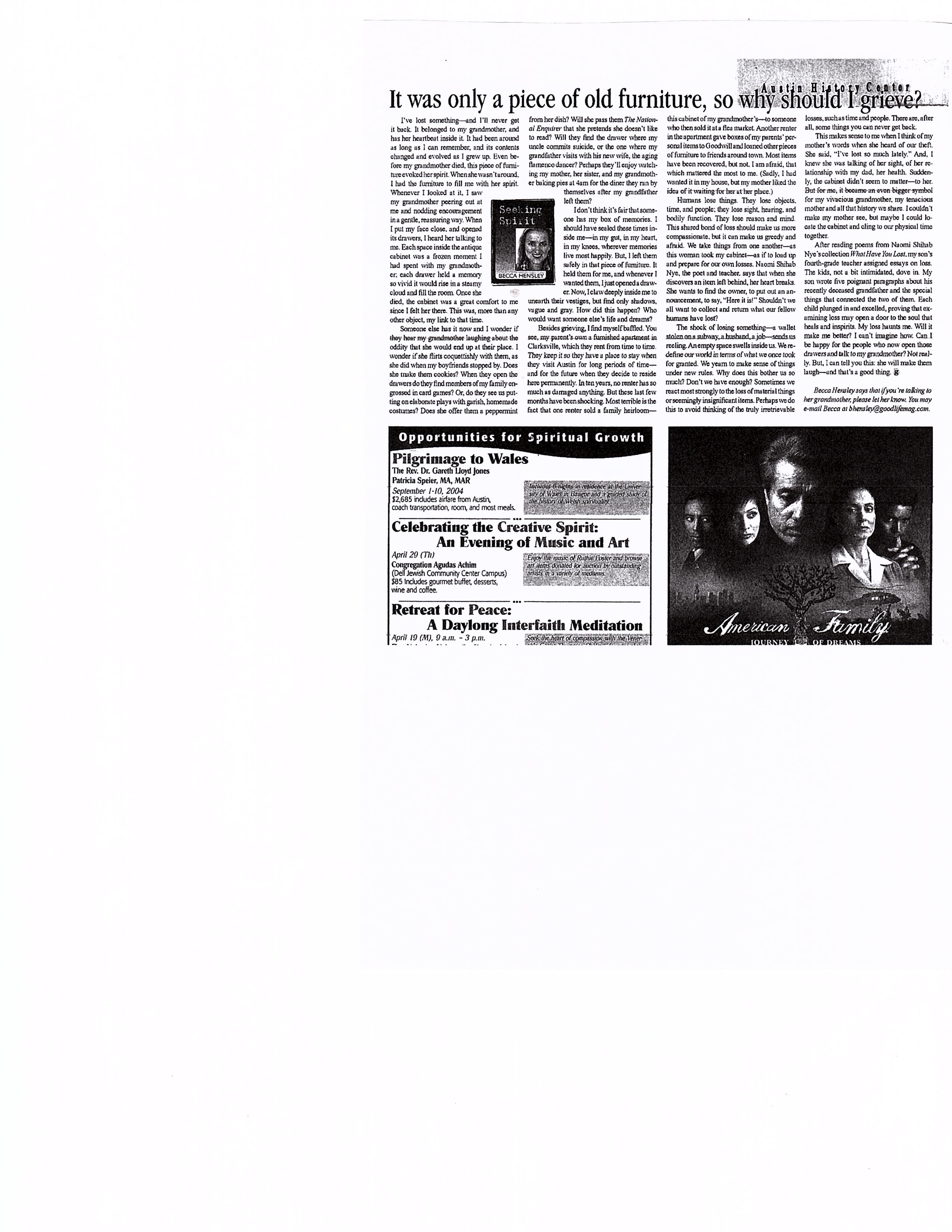 It was only a piece of old furniture, so why should I grieve…The Good Life..