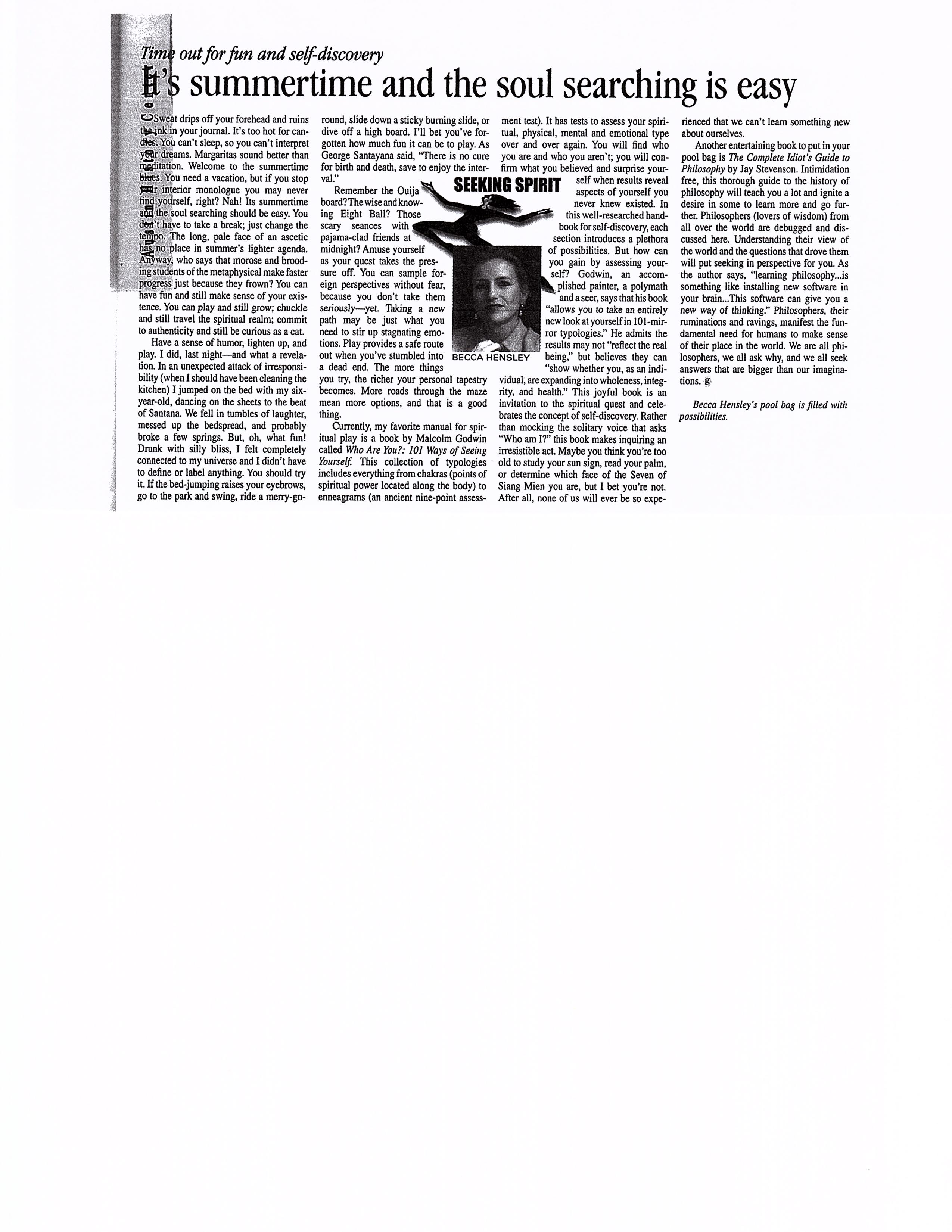 It’s summertime and the soul searching is easy…The Good Life…June 2000