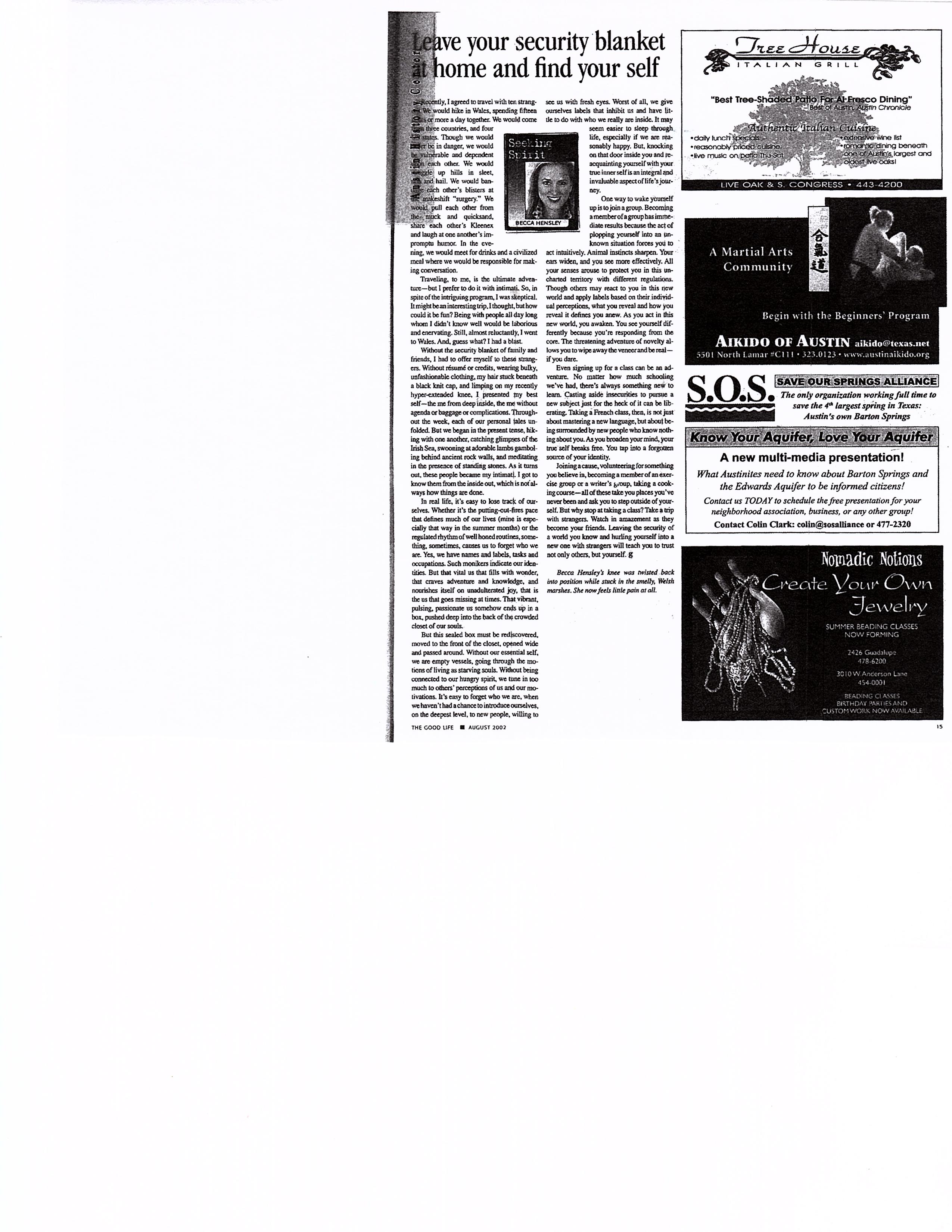 Leave your security blanket at home and find your self…The Good Life…August 2002