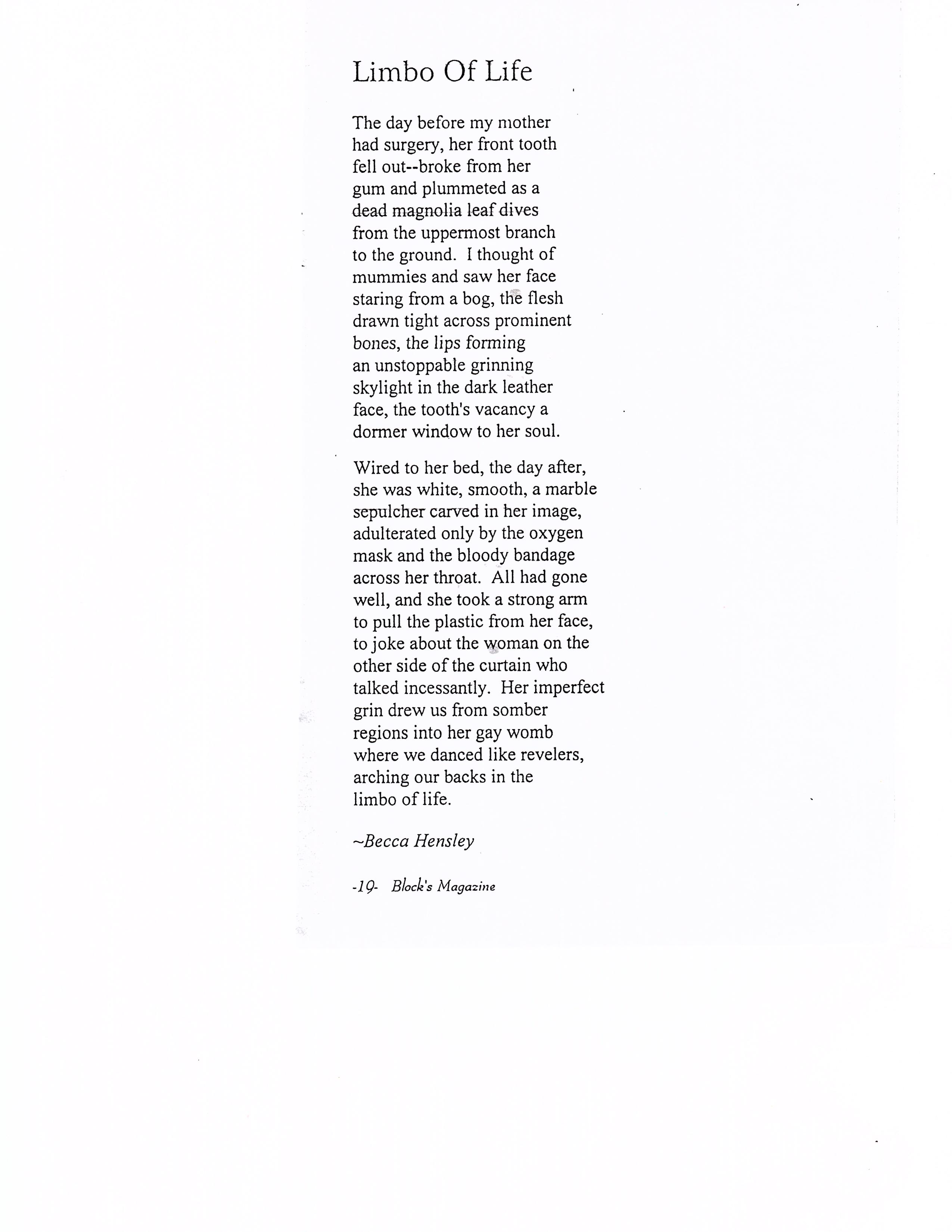 "I see an oceanscape turbulent with blues. They mottle the water like