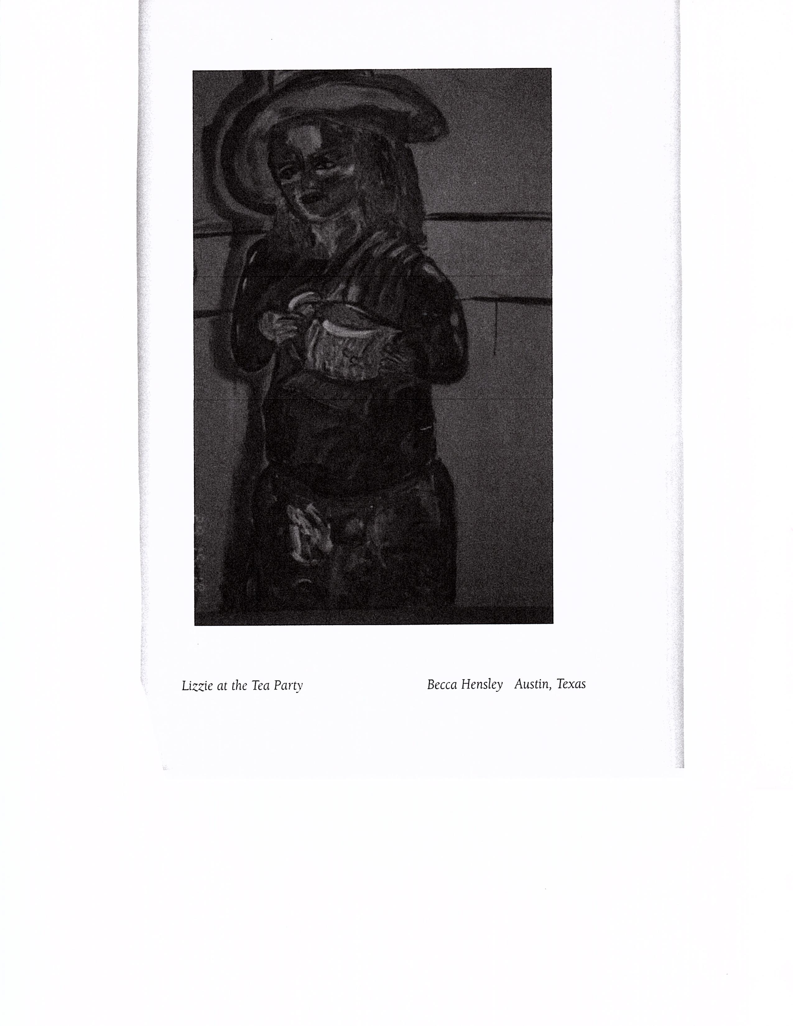 "I see an oceanscape turbulent with blues. They mottle the water like