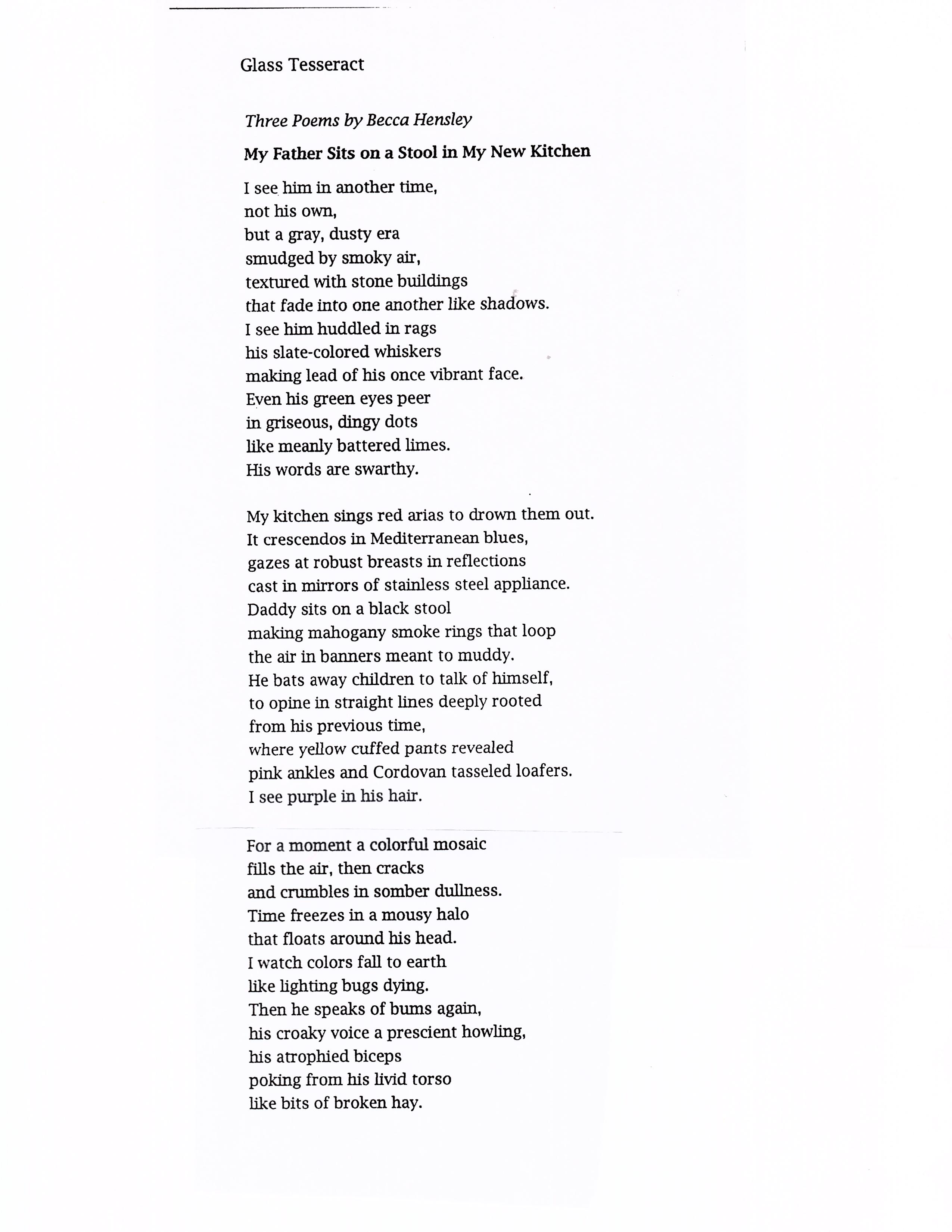 My Father Sits on a Stool in my New Kitchen; I Thought I Was A Fertility Goddess; Dreaming of My Children Grown…Glass Tesseract…Summer 2004