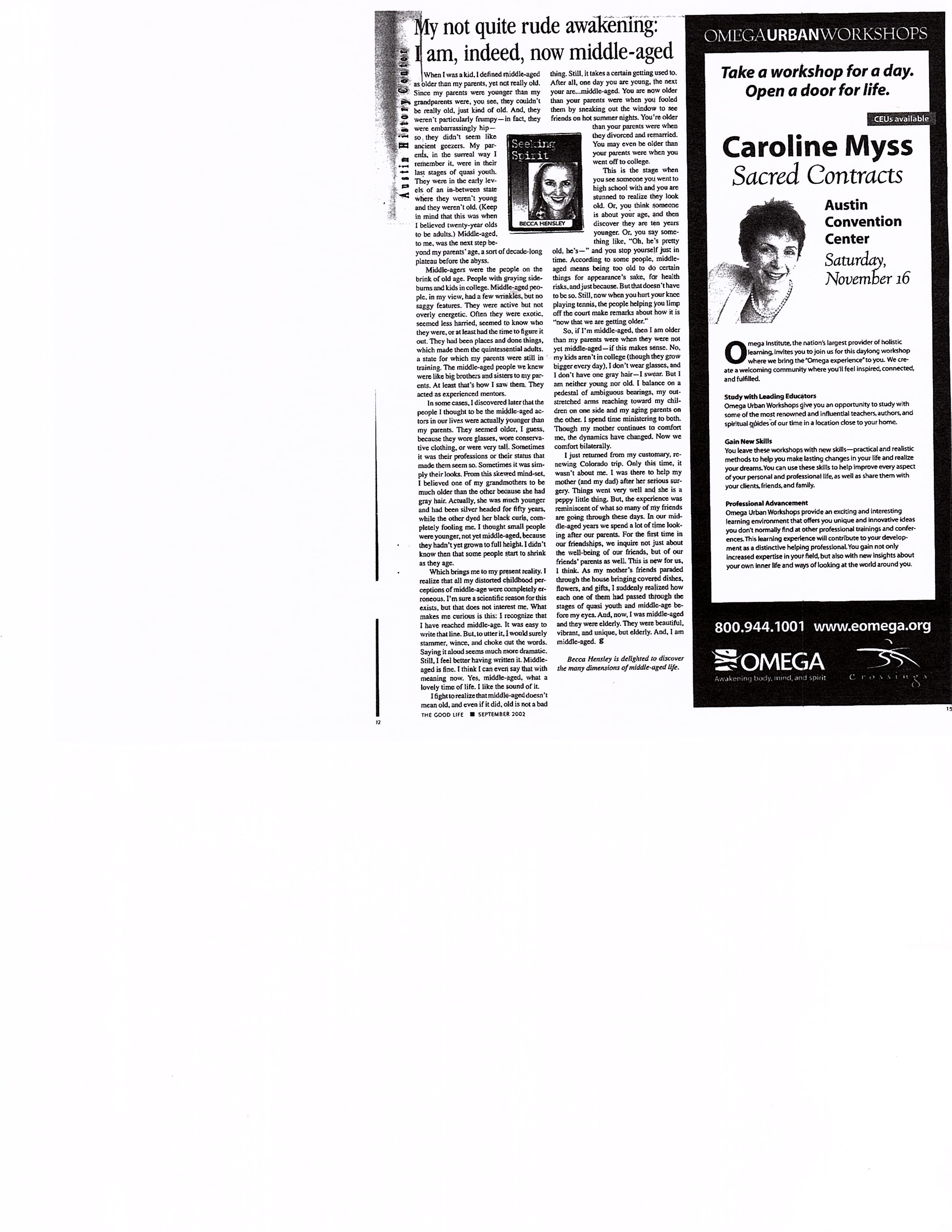 My not quite rude awakening: O am, indeed, now middle-aged…The Good Life…Septermber 2002