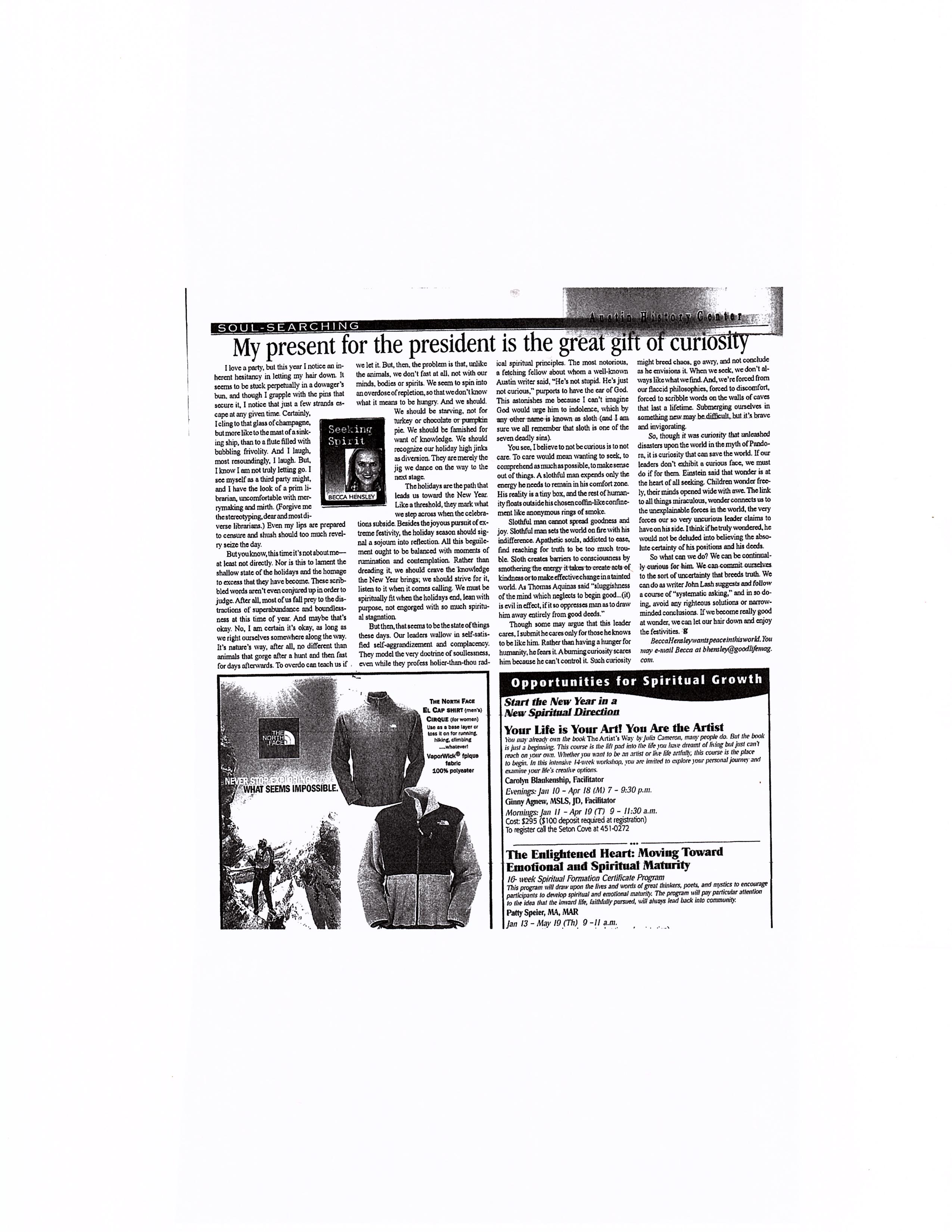 My present for the president is the great gift of curiosity…The Good Life…