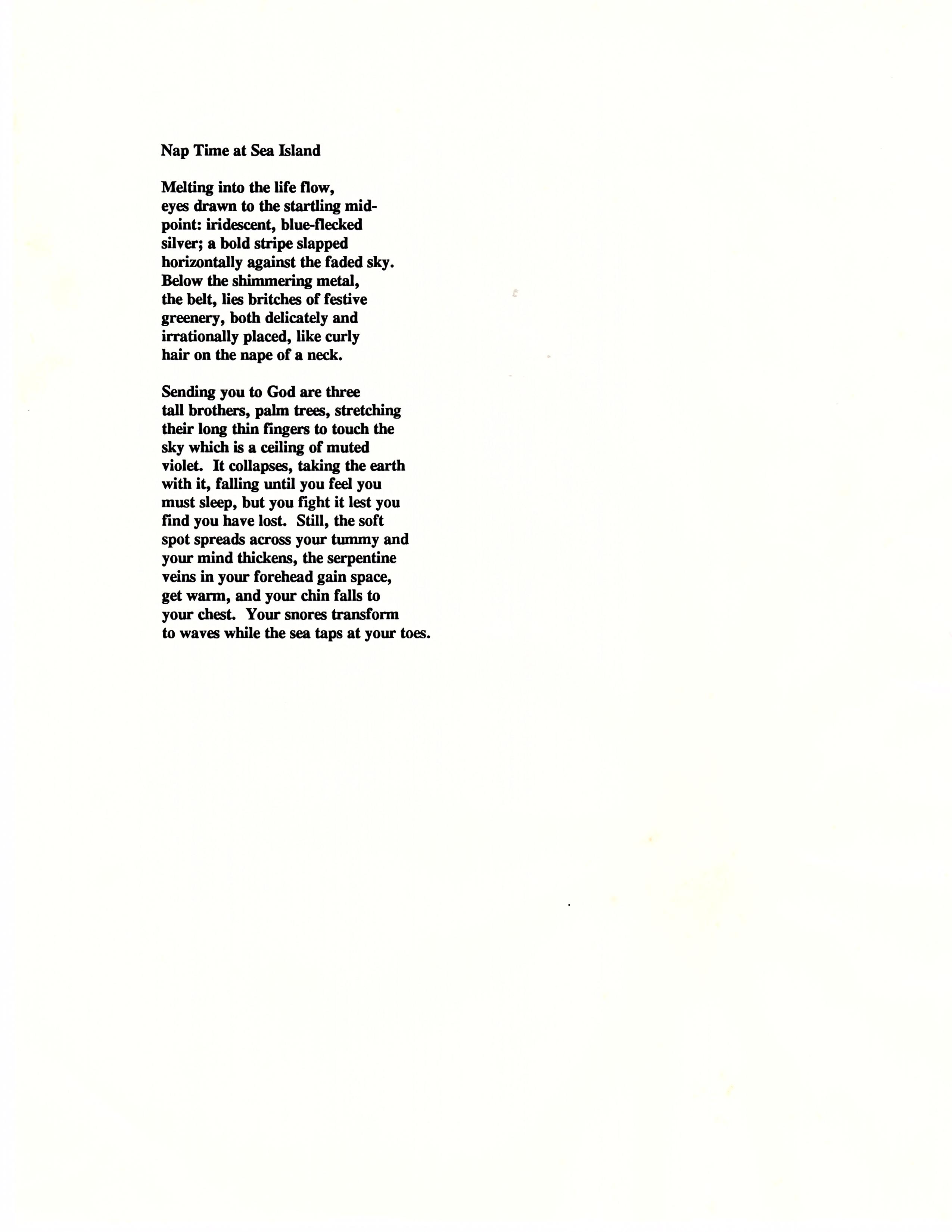 "I see an oceanscape turbulent with blues. They mottle the water like