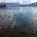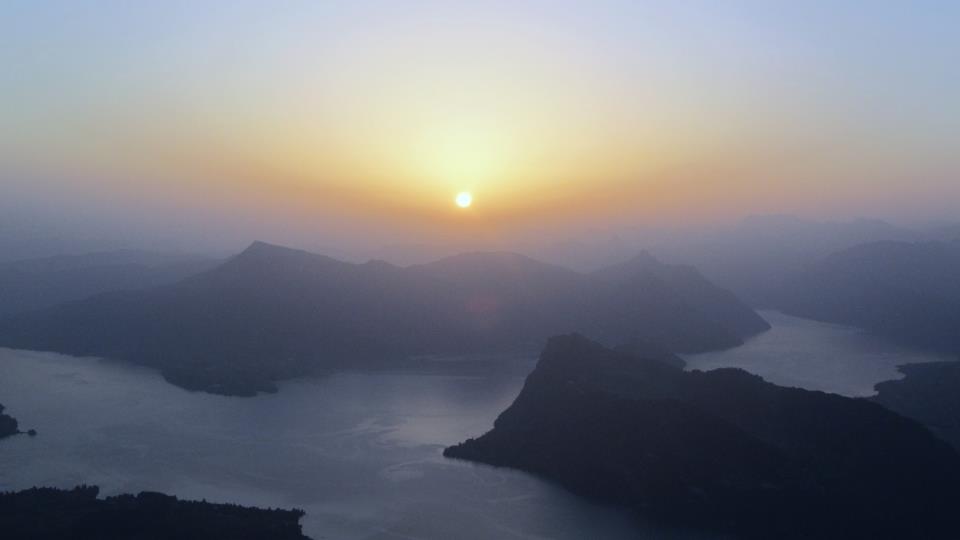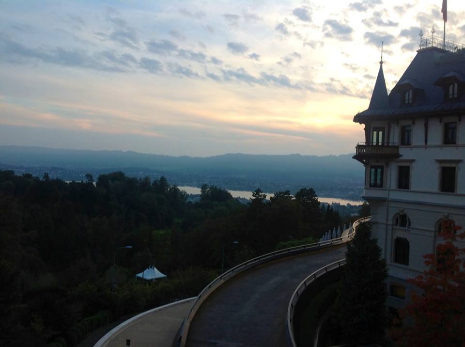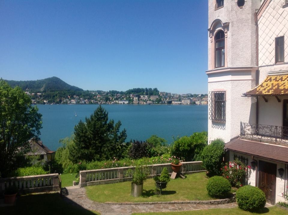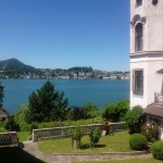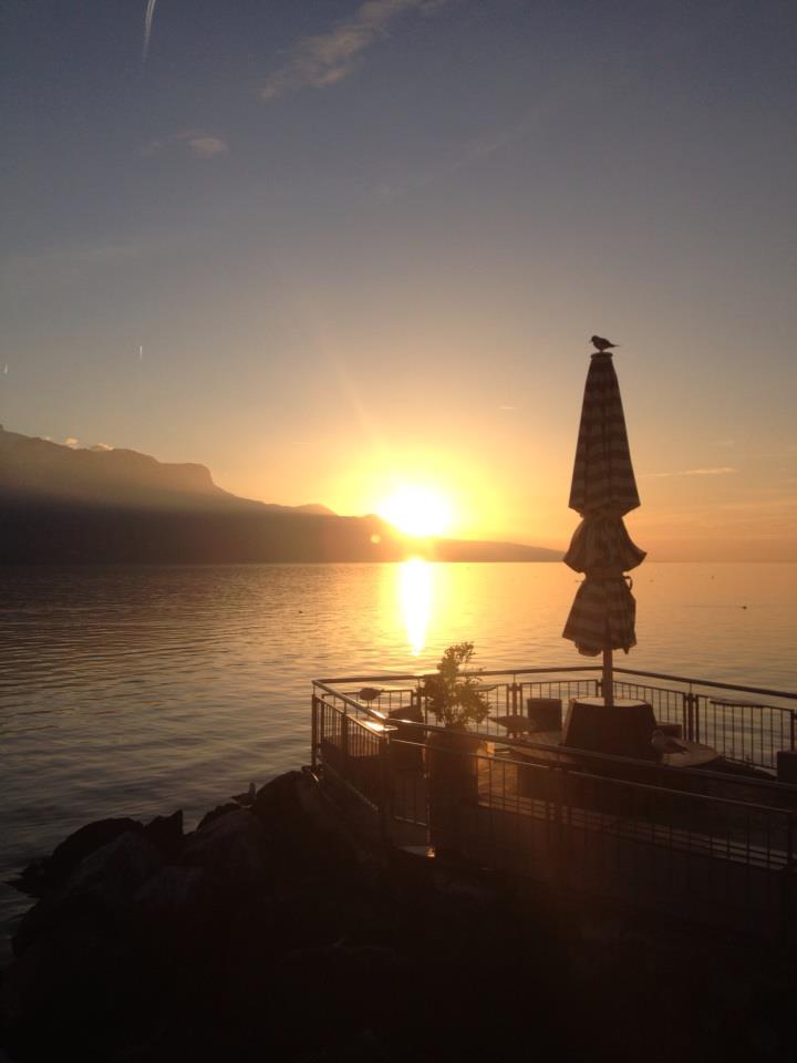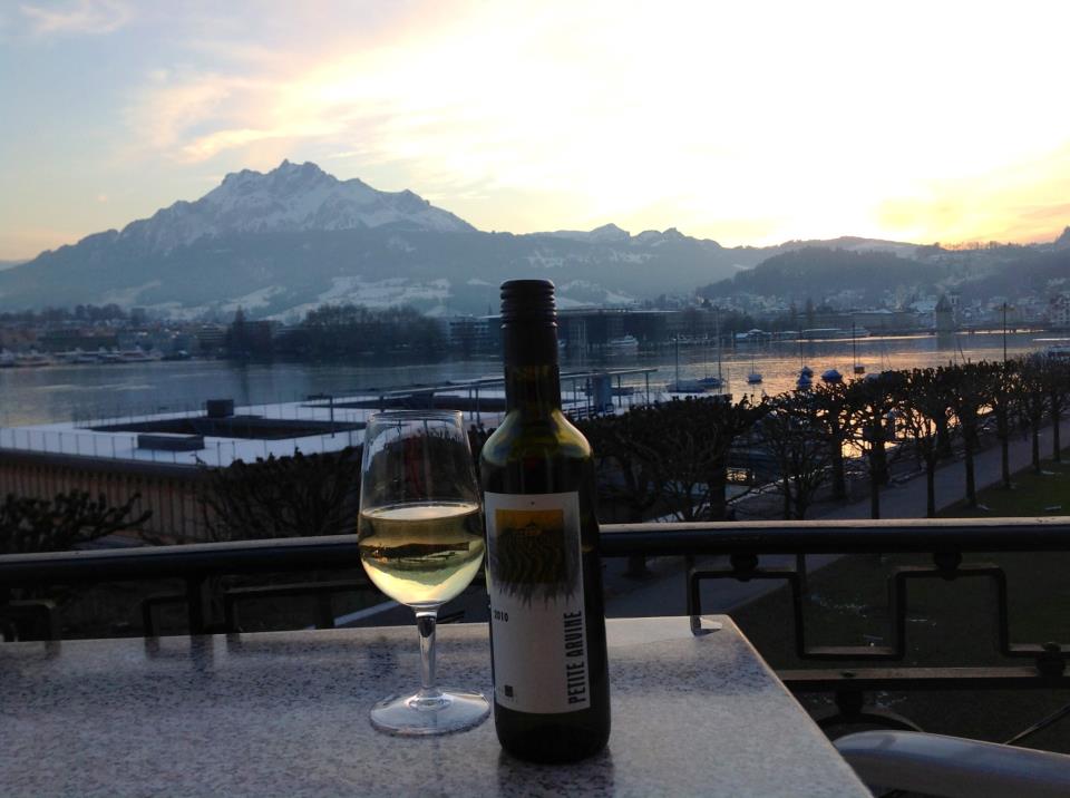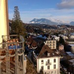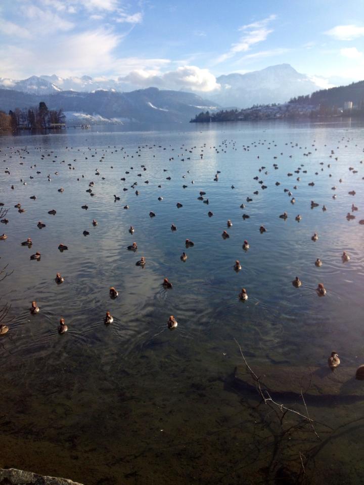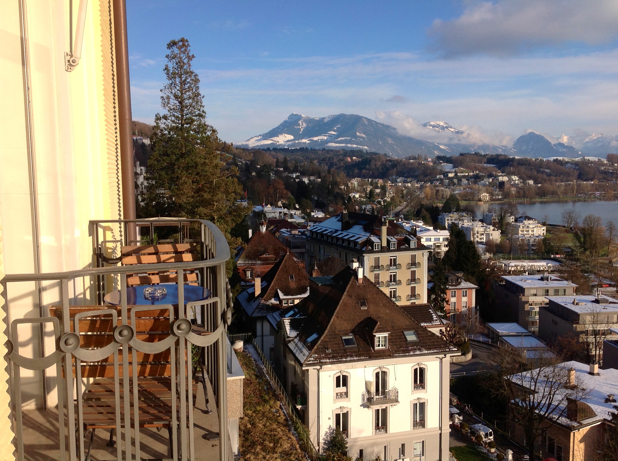 "The city of Lucerne nestles the water--scattering around its edges and up the mountain like a slowly spreading spill."