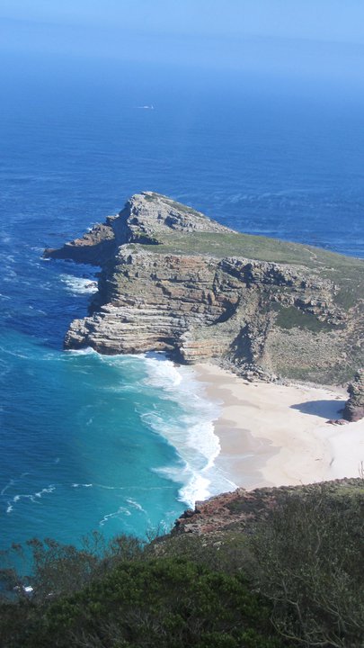 "I see an oceanscape turbulent with blues. They mottle the water like