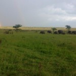 "Like a pointer finger, a rainbow as thick as a column, illuminates the sky