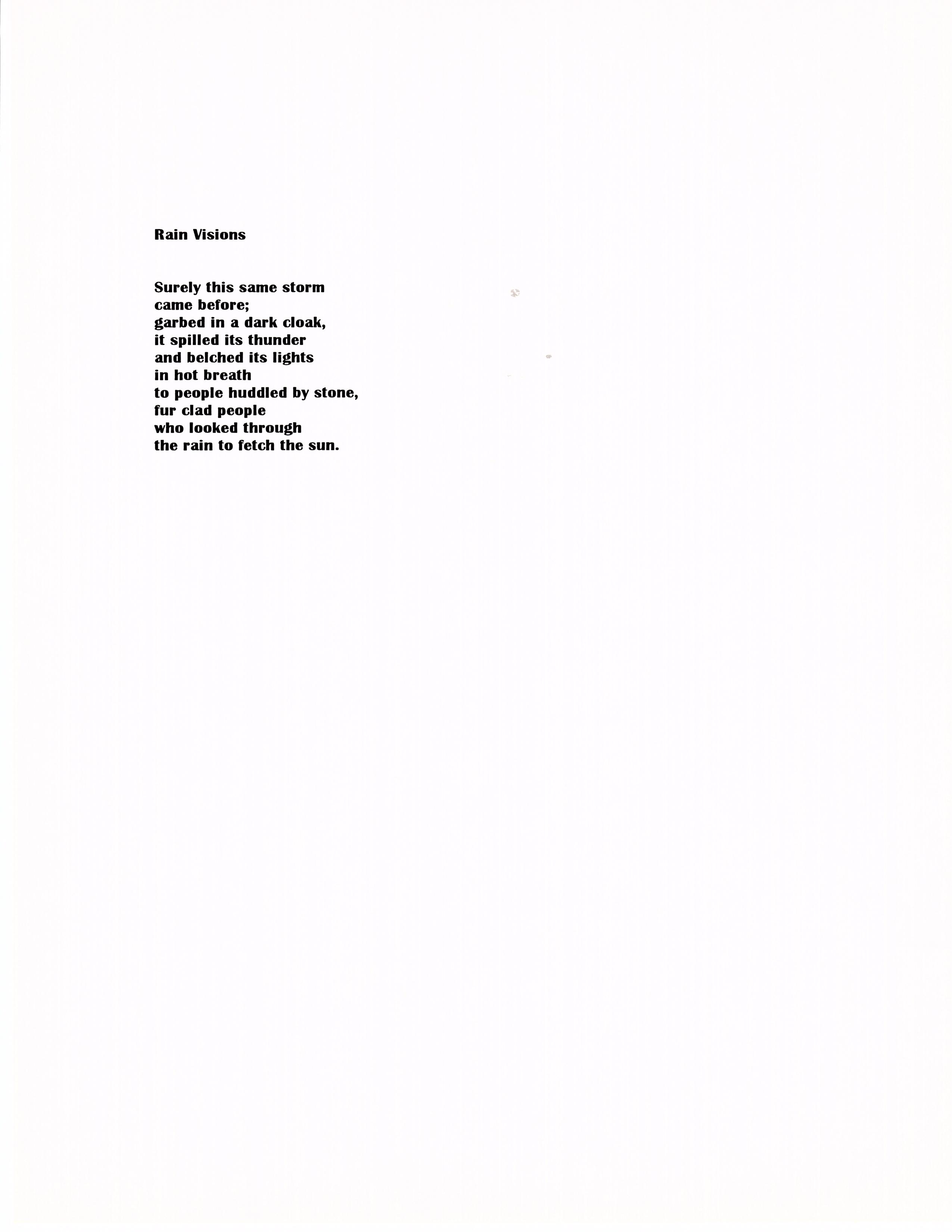 "I see an oceanscape turbulent with blues. They mottle the water like