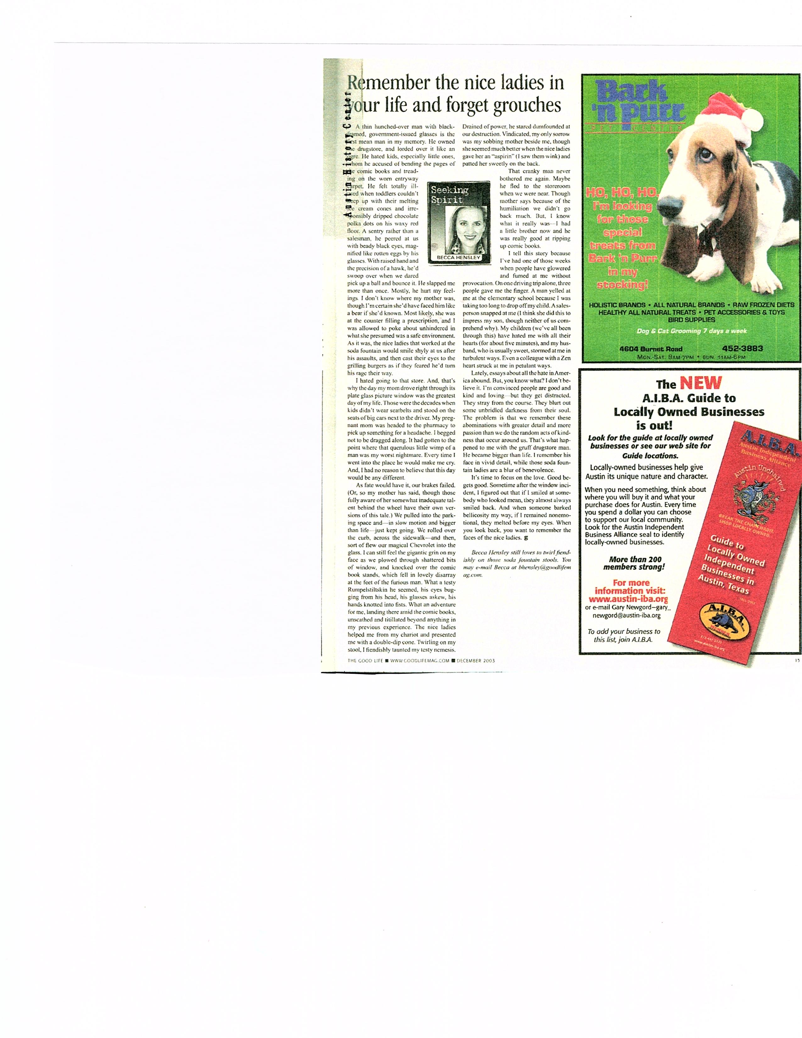 Remember the nice ladies in your life and forget grouches…The Good Life…December 2003