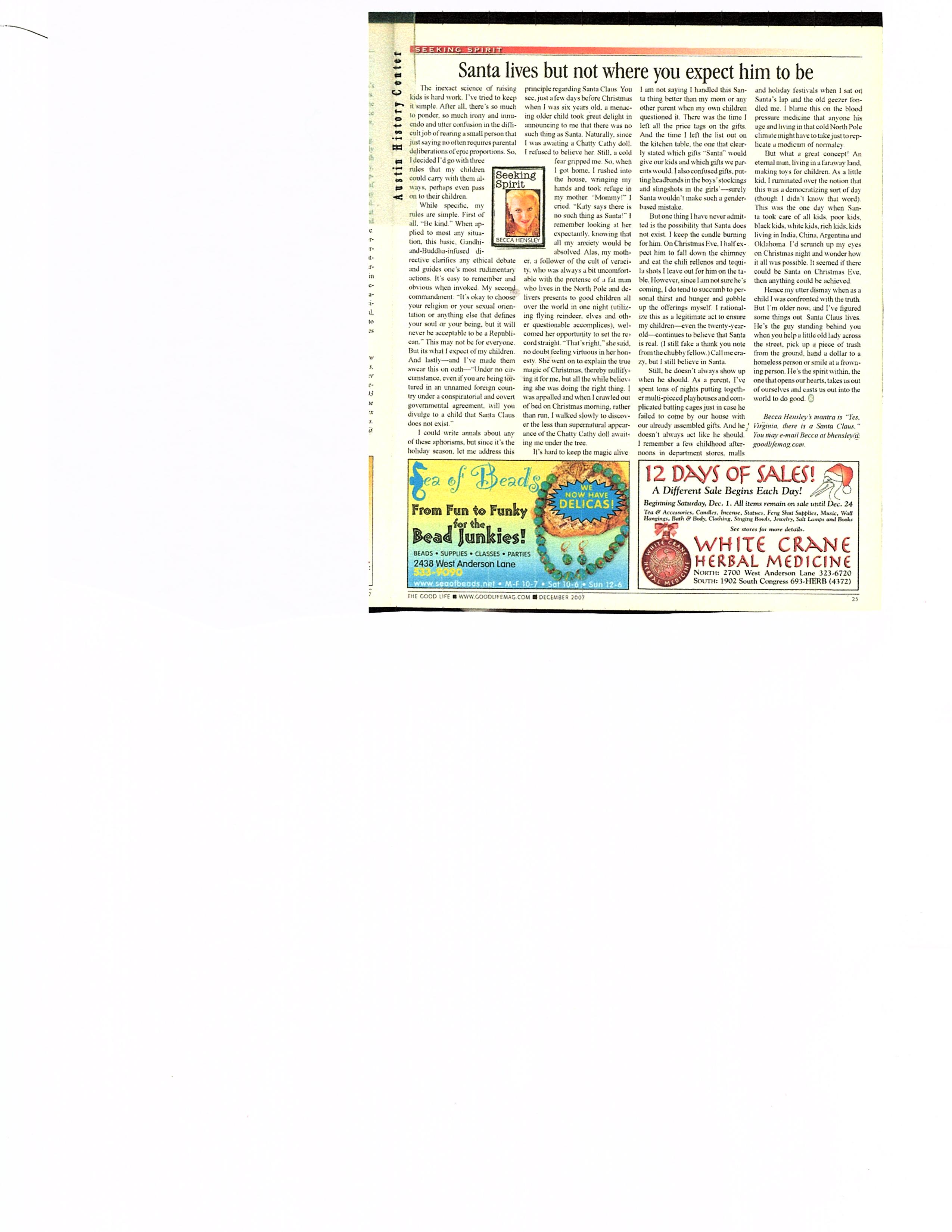 Santa lives but not where you expect him to be…The Good Life…December 2007