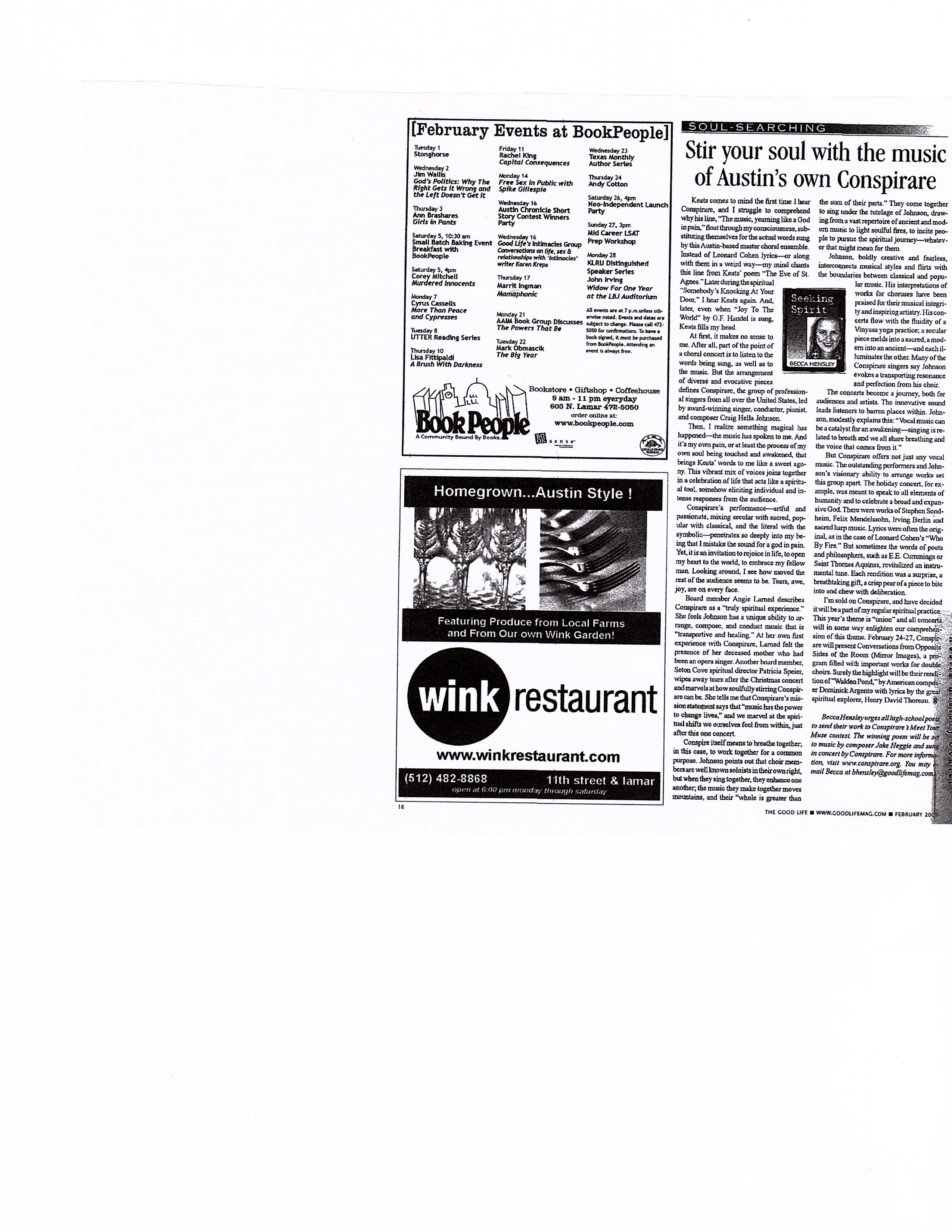 Stir your soul with the music of Austin’s own Conspirare…The Good Life…February 2005