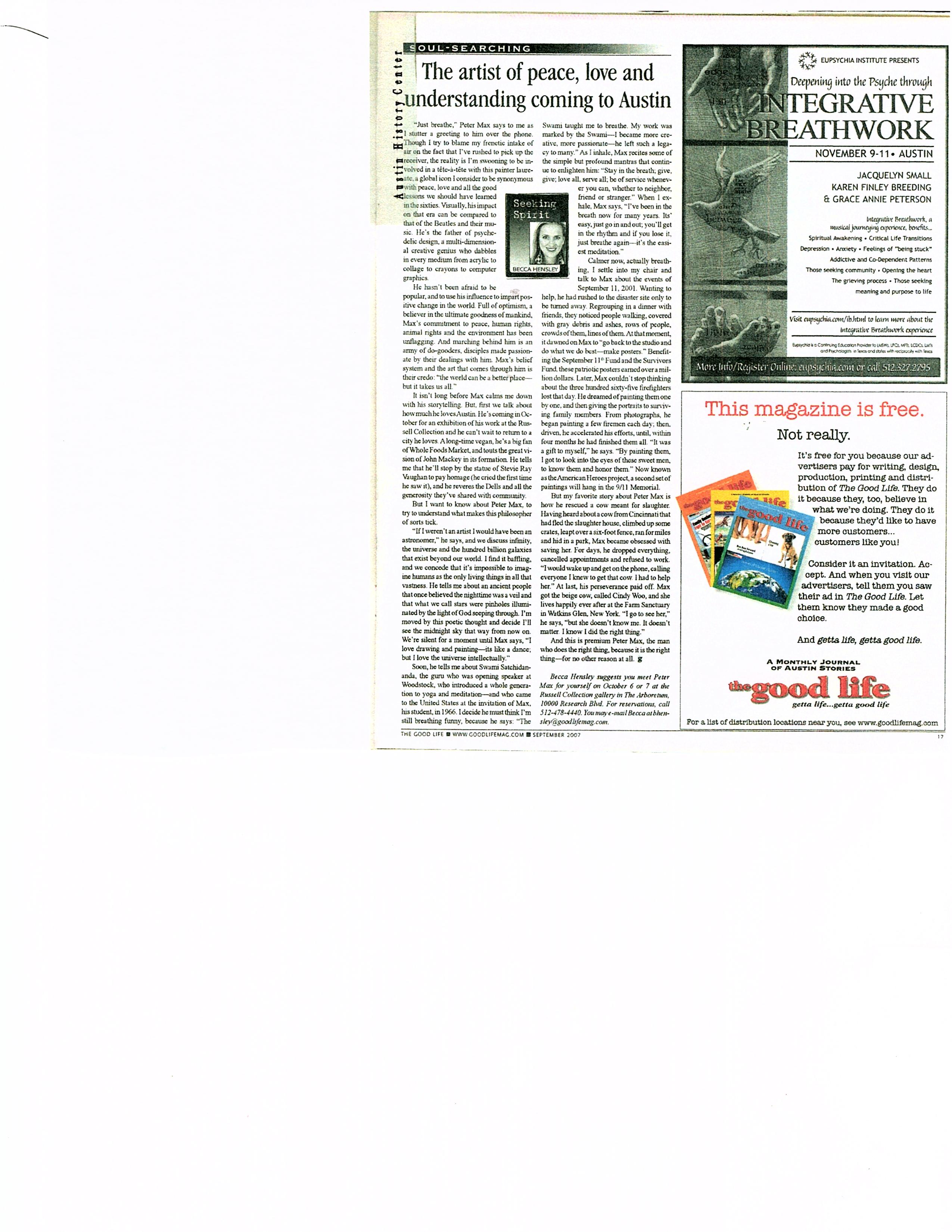 The artist of peace, love and understanding coming to Austin…The Good Life…September 2007