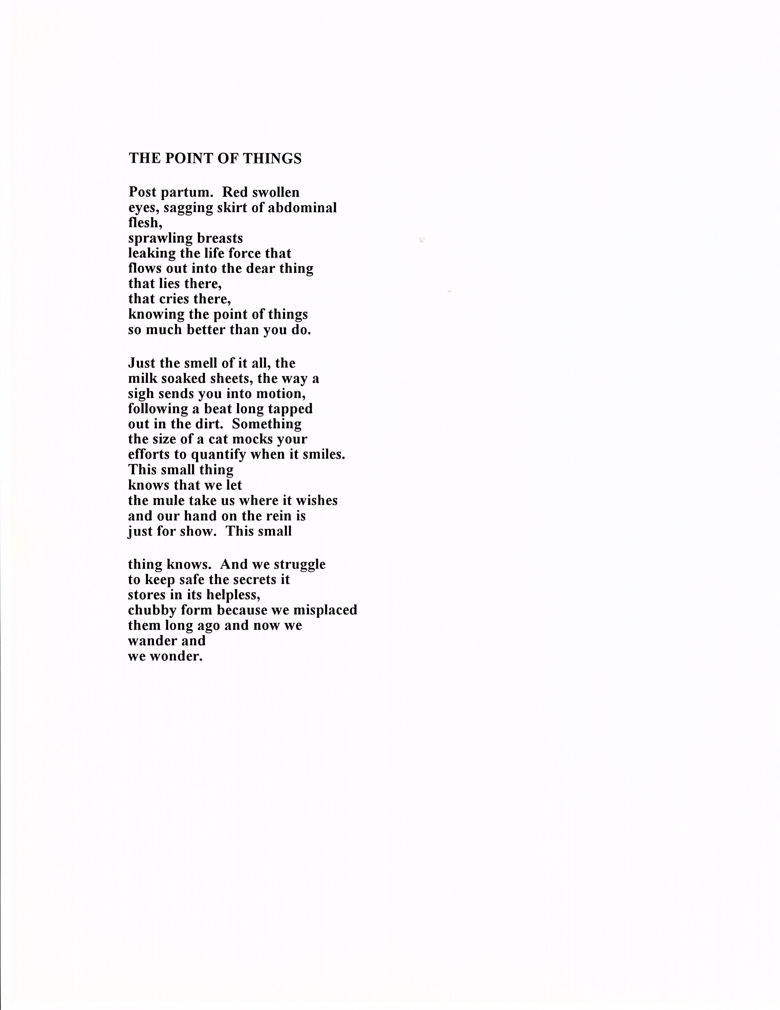 "I see an oceanscape turbulent with blues. They mottle the water like