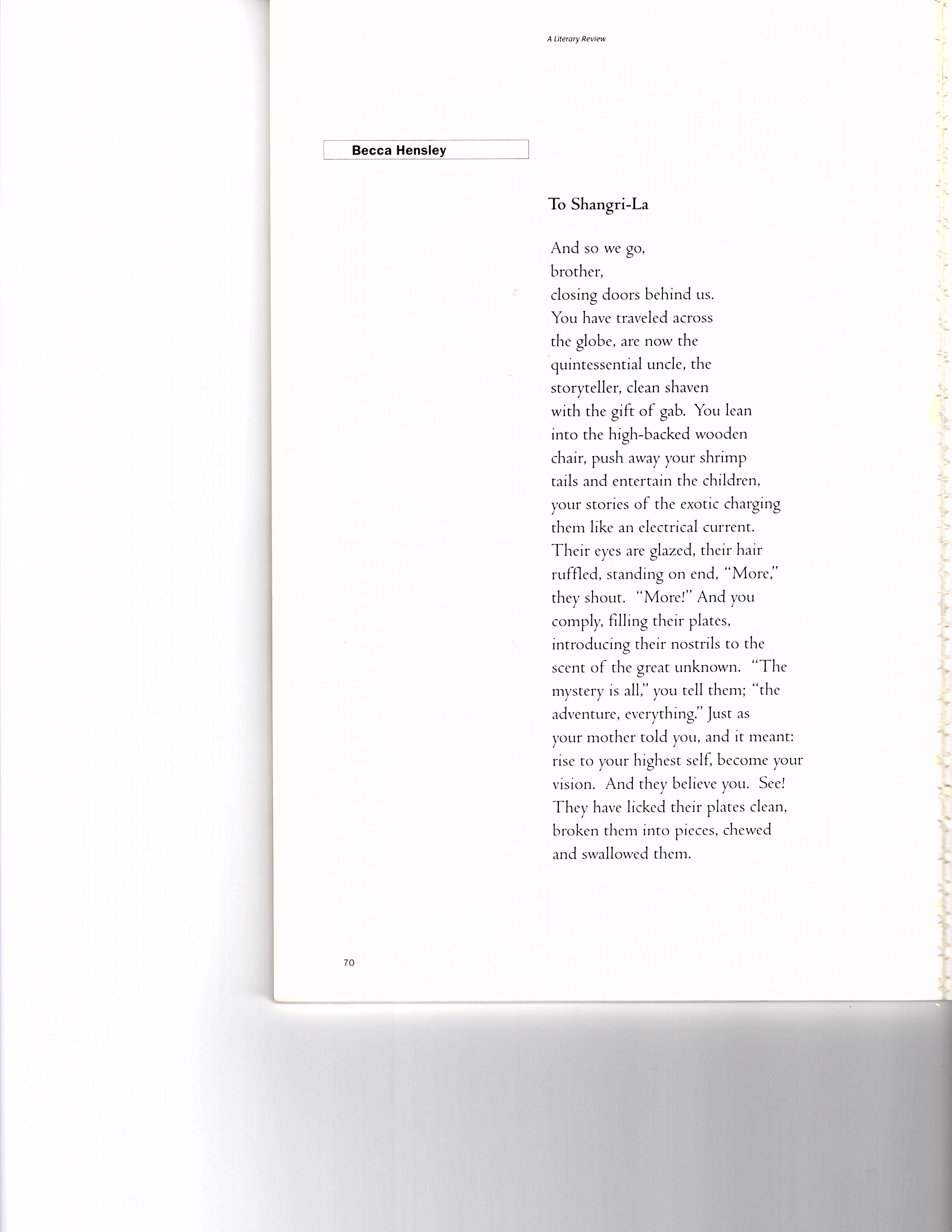 To Shangri-La…flyway..A Literary Journal…Fall 1996