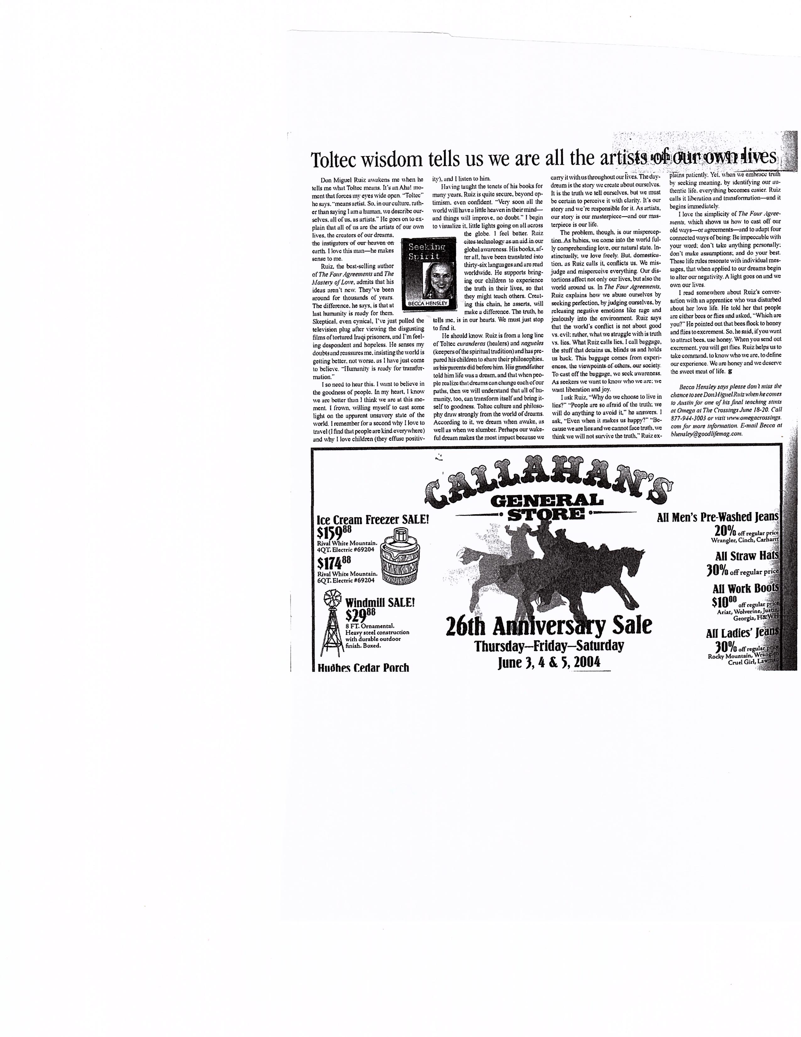 Toltec wisdom tells us we are all the artists of our own lives…The Good Life…June 2004