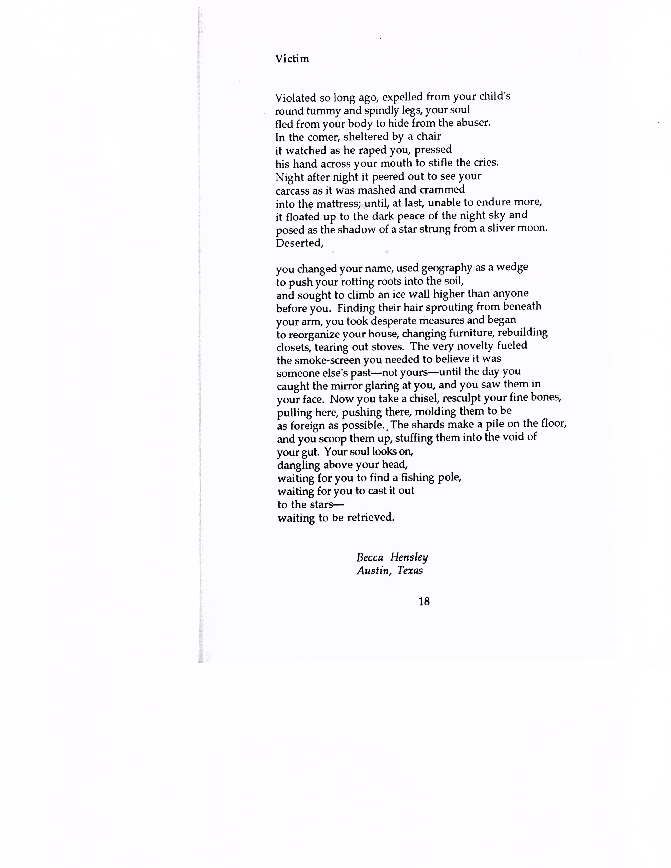 "I see an oceanscape turbulent with blues. They mottle the water like