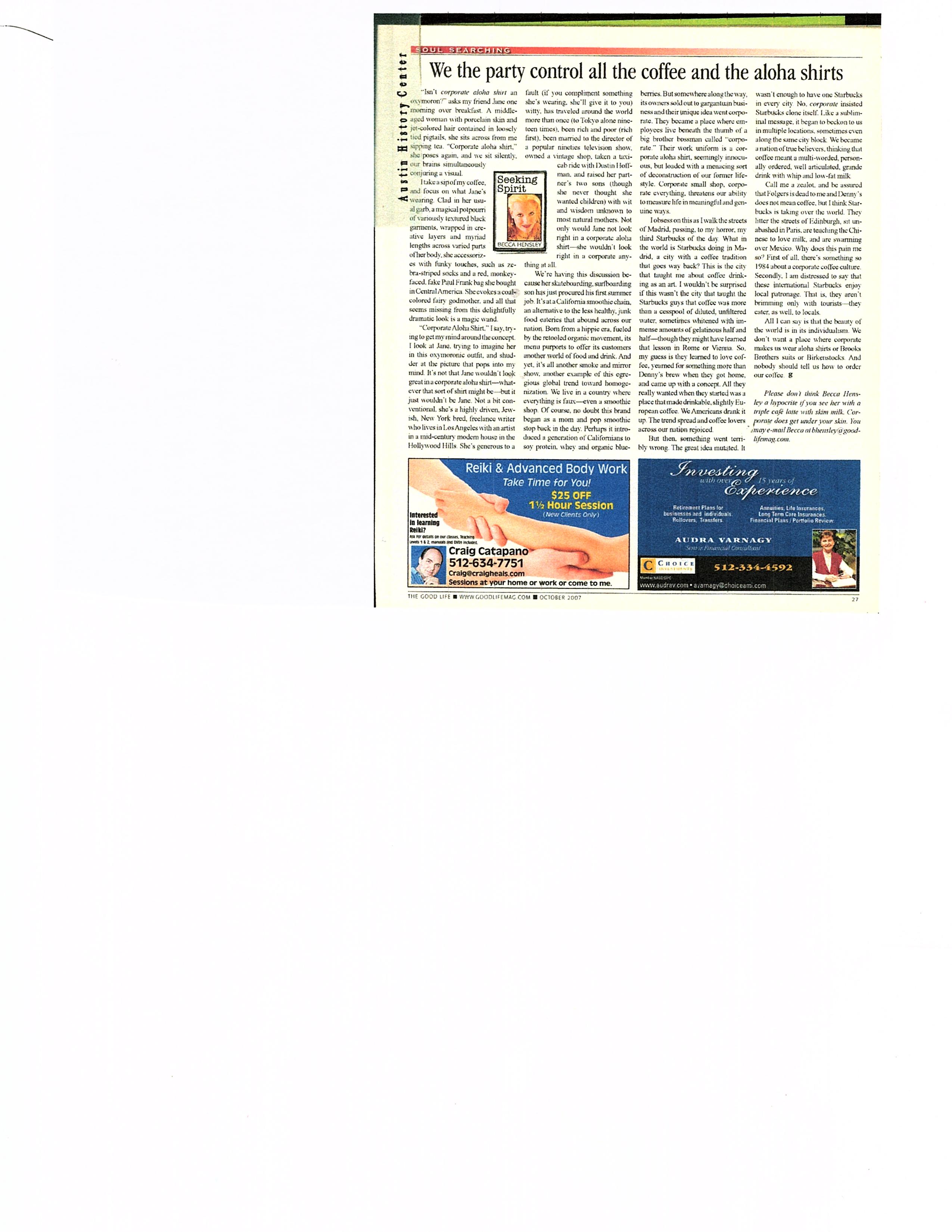 We the party control all the coffee and the aloha shirts…The Good Life…October 2007