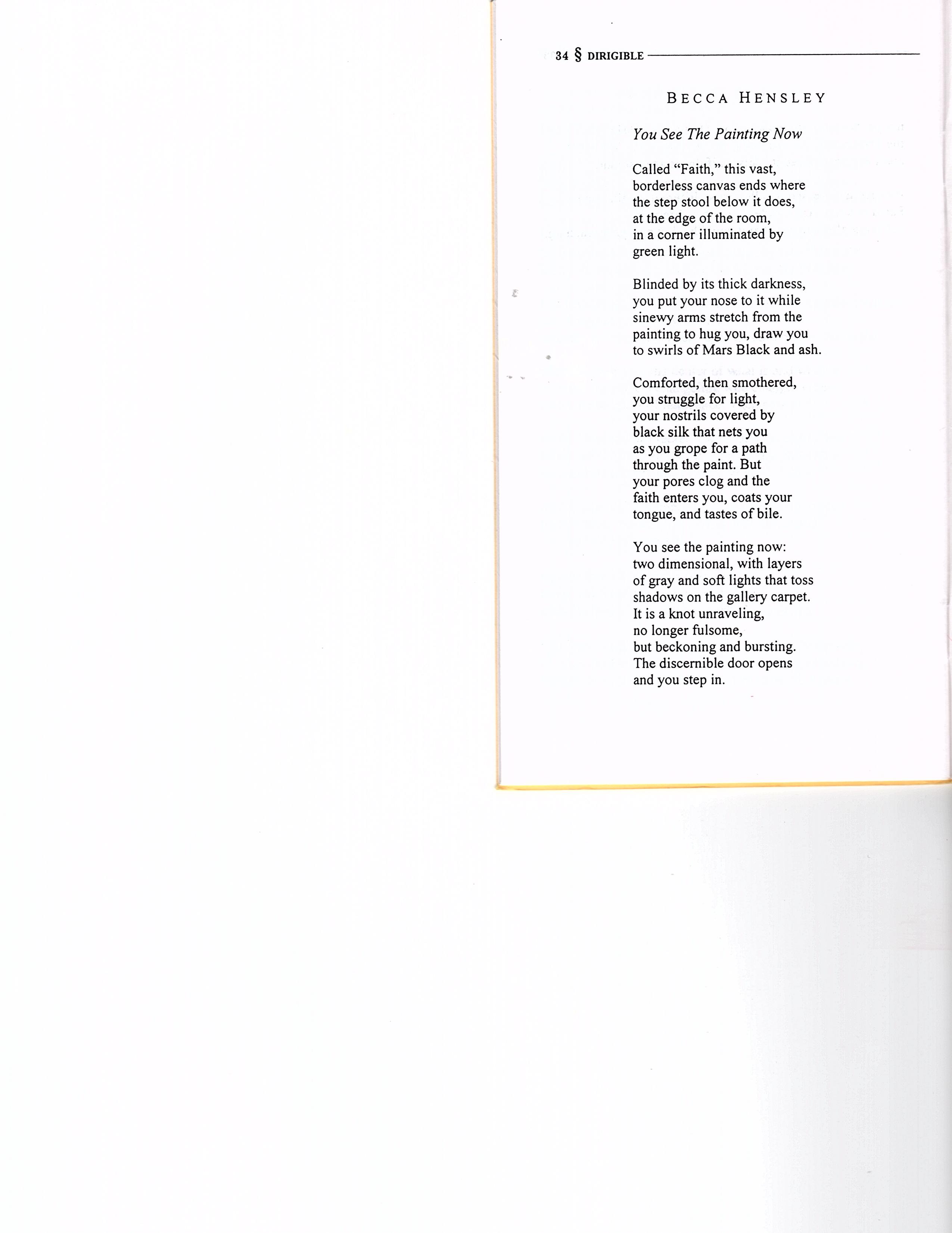 "I see an oceanscape turbulent with blues. They mottle the water like